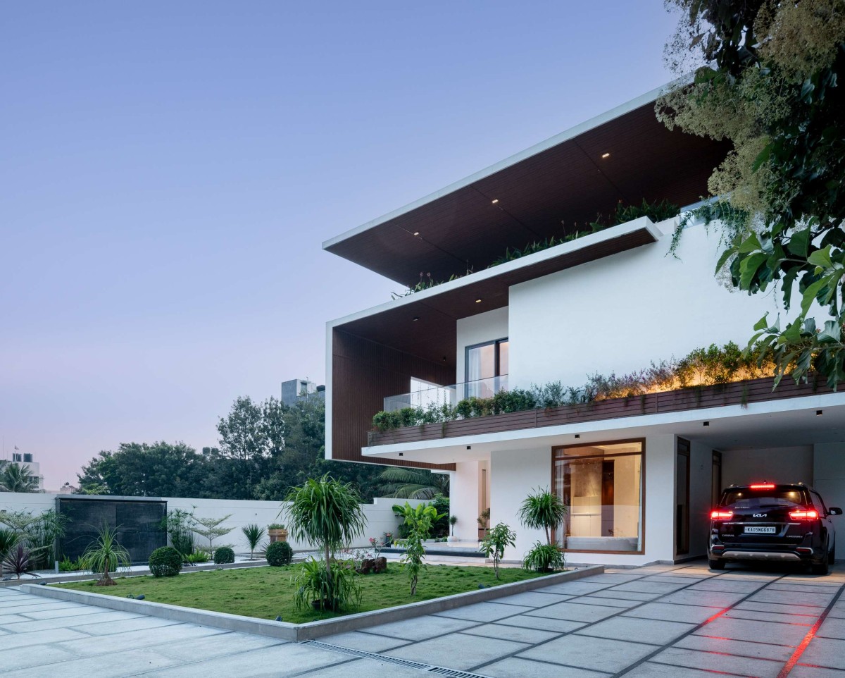 Night exterior view of RR Residence by Parivartan Design Studio LLP