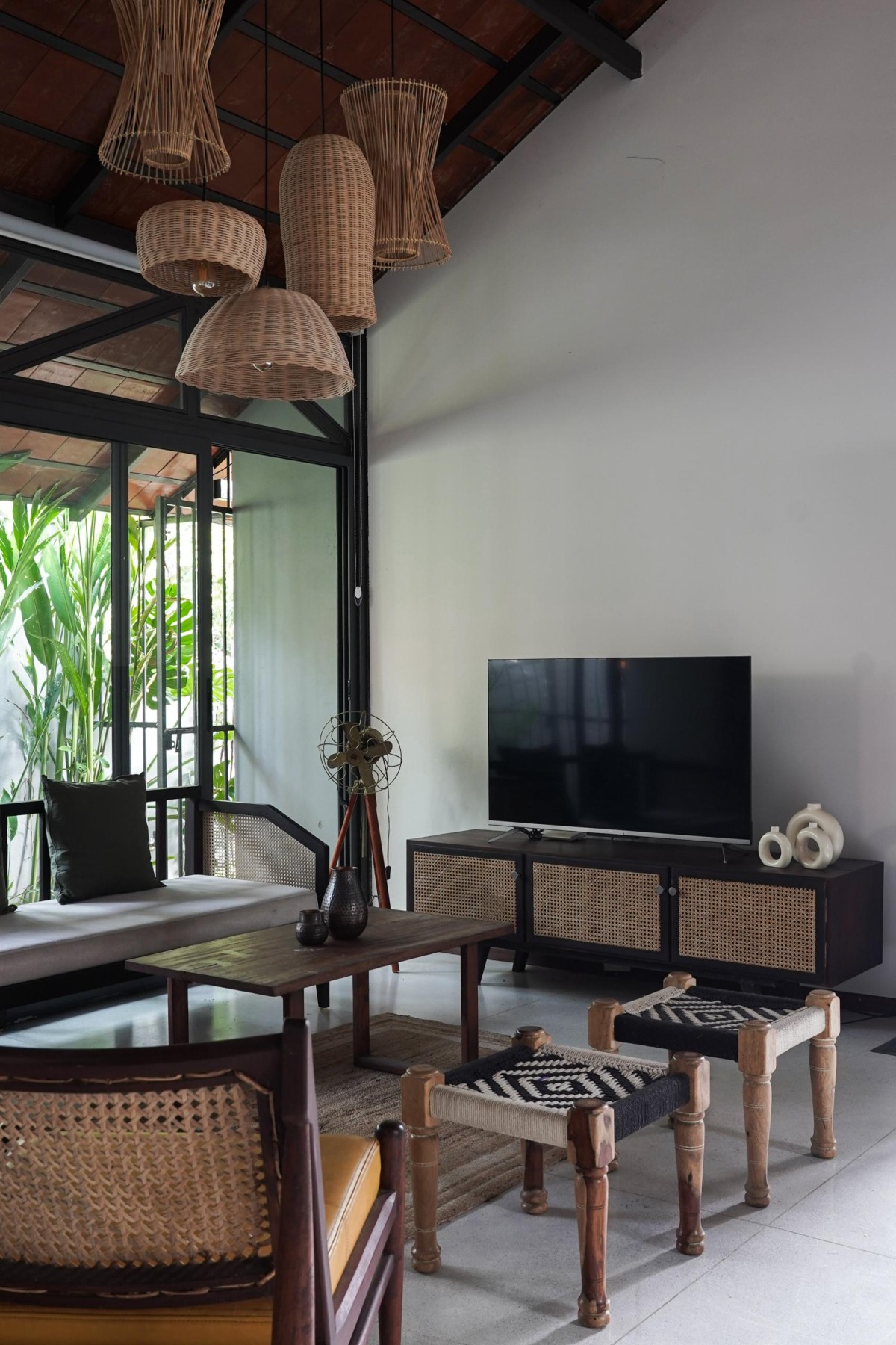 Within this enclosure, landscaped green pockets were introduced along the side setbacks, functioning as visual and environmental buffers. Large openings from the living and dining areas extend into these pockets, allowing natural light and ventilation to enhance the spatial experience while maintaining a sense of openness within the constrained footprint.