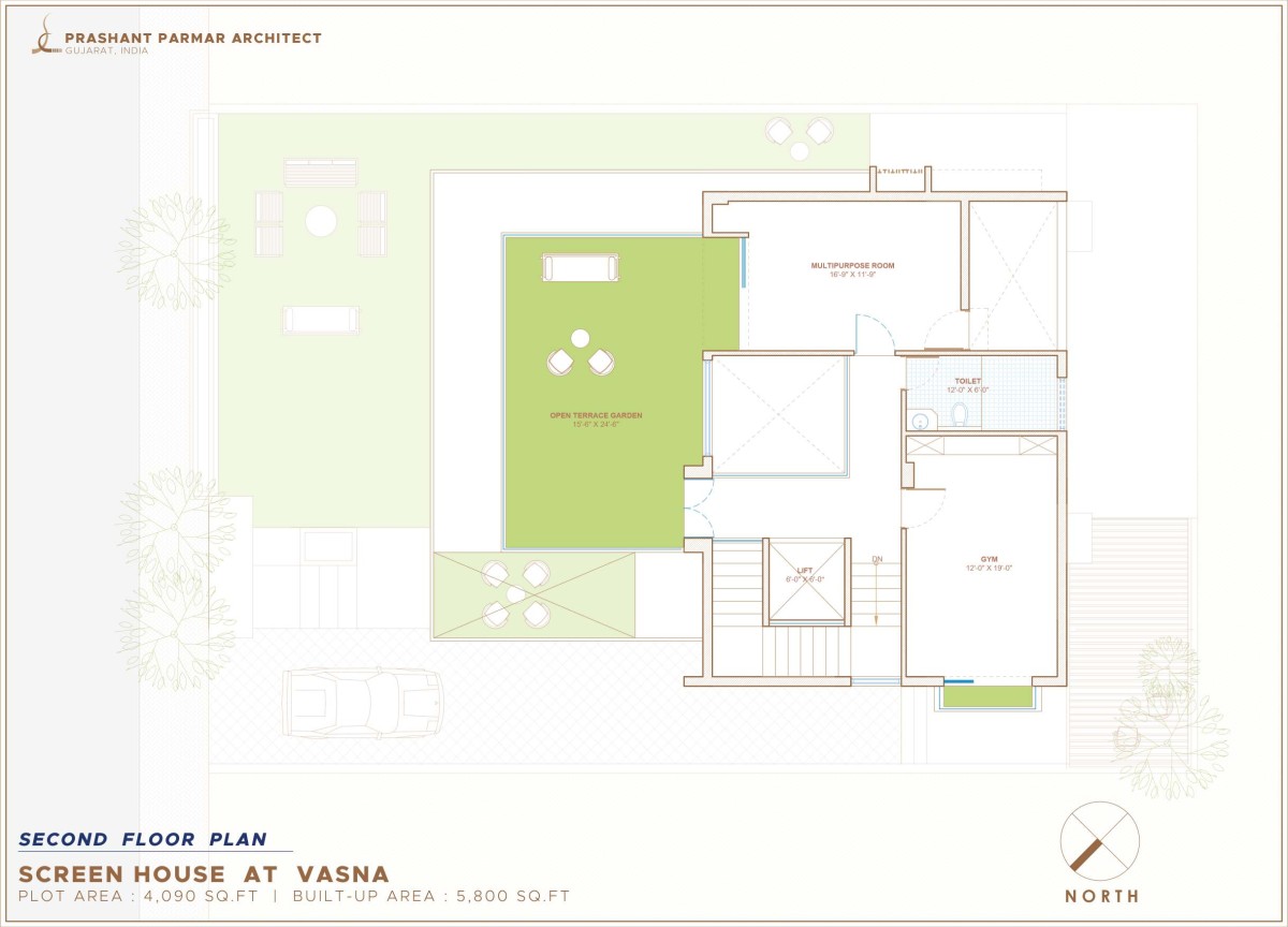 Second Floor Plan of Screen House at Ahmedabad by Prashant Parmar Architect