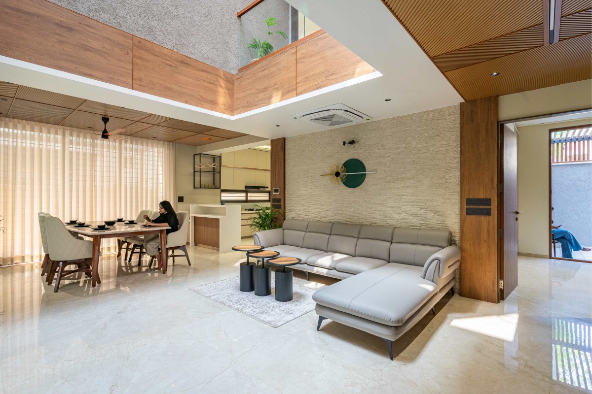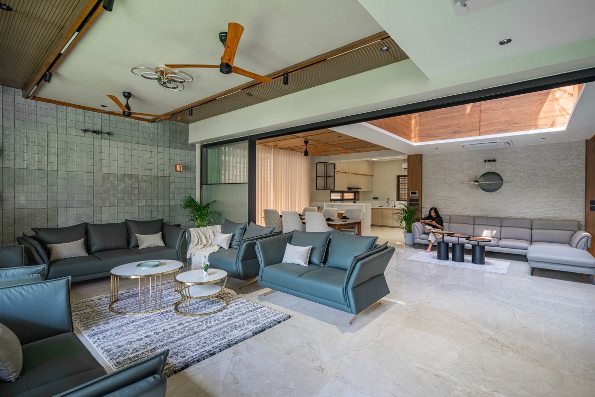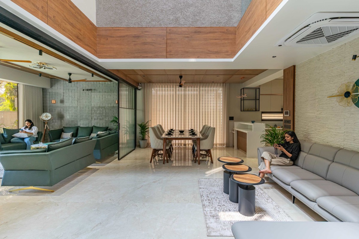 Family living & Dining of Screen House at Ahmedabad by Prashant Parmar Architect