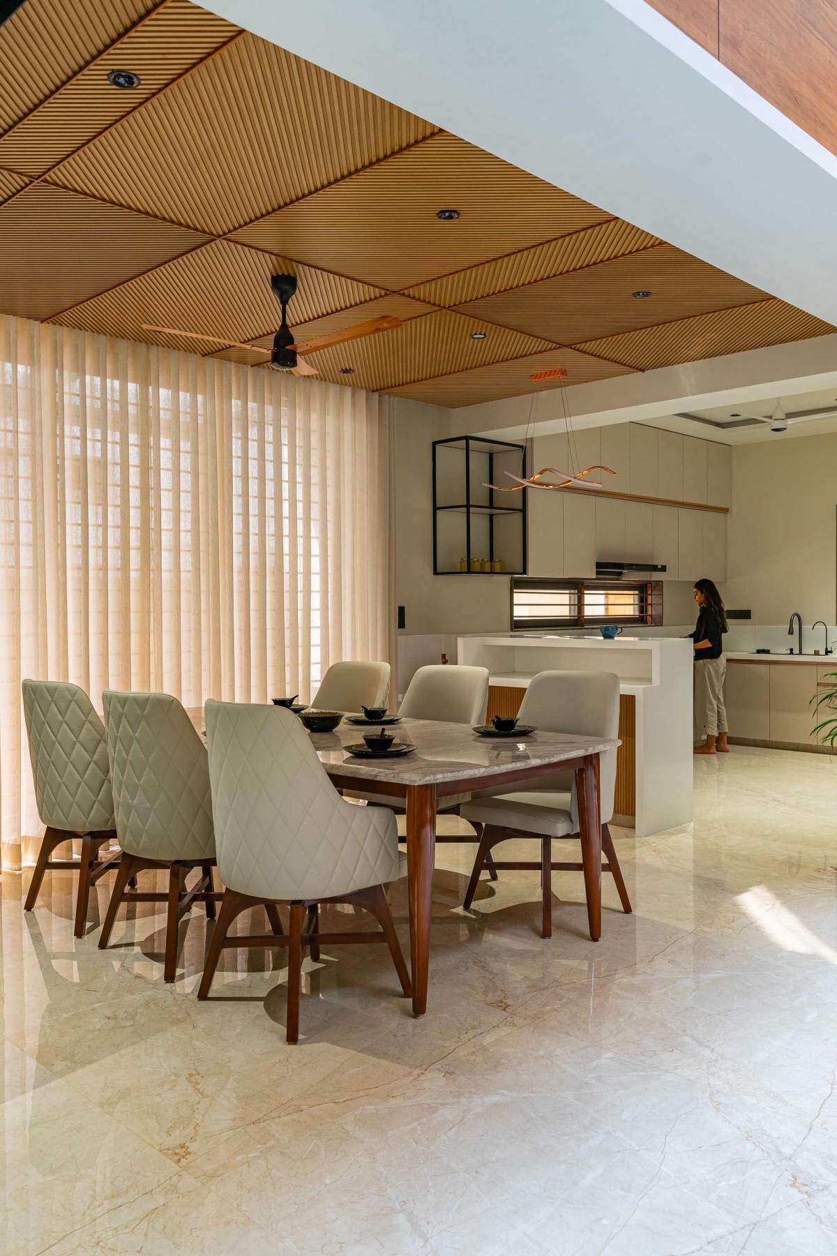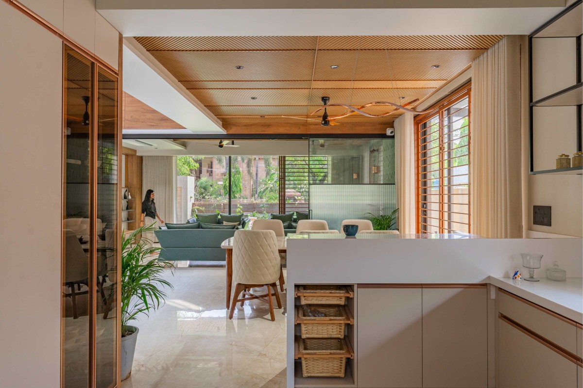 Drawing room to Kitchen view of Screen House at Ahmedabad by Prashant Parmar Architect