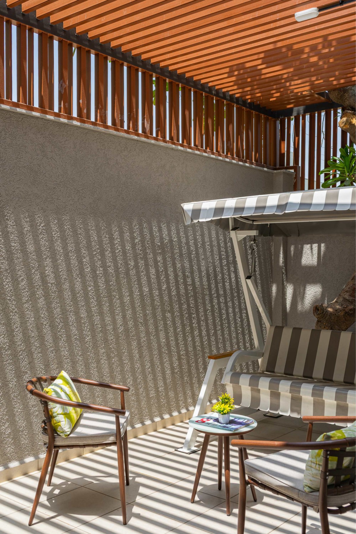 Semi-covered sitting area of Screen House at Ahmedabad by Prashant Parmar Architect