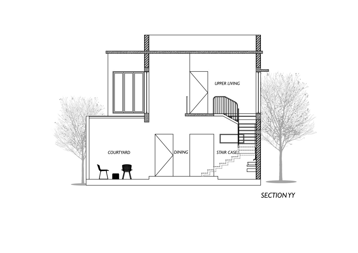 Section YY of Shabz Villa by BUHO Architects
