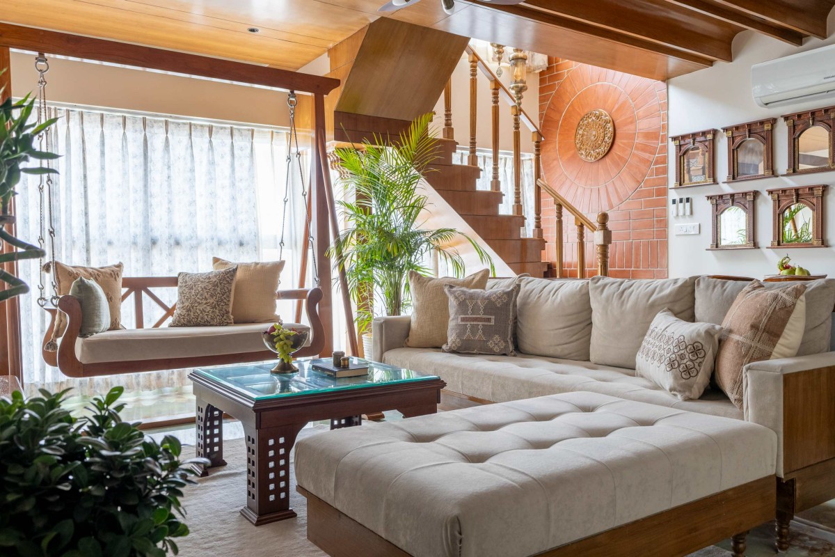 Natural wood forms the primary architectural language, establishing warmth, tactile richness, and continuity across spaces. Traditional elements such as arched openings, carved details, handcrafted features, and mandala-inspired motifs are thoughtfully integrated in a subtle and elegant manner.