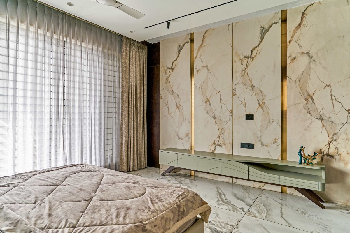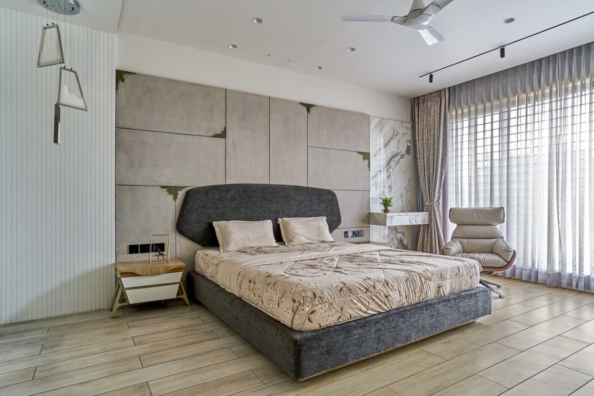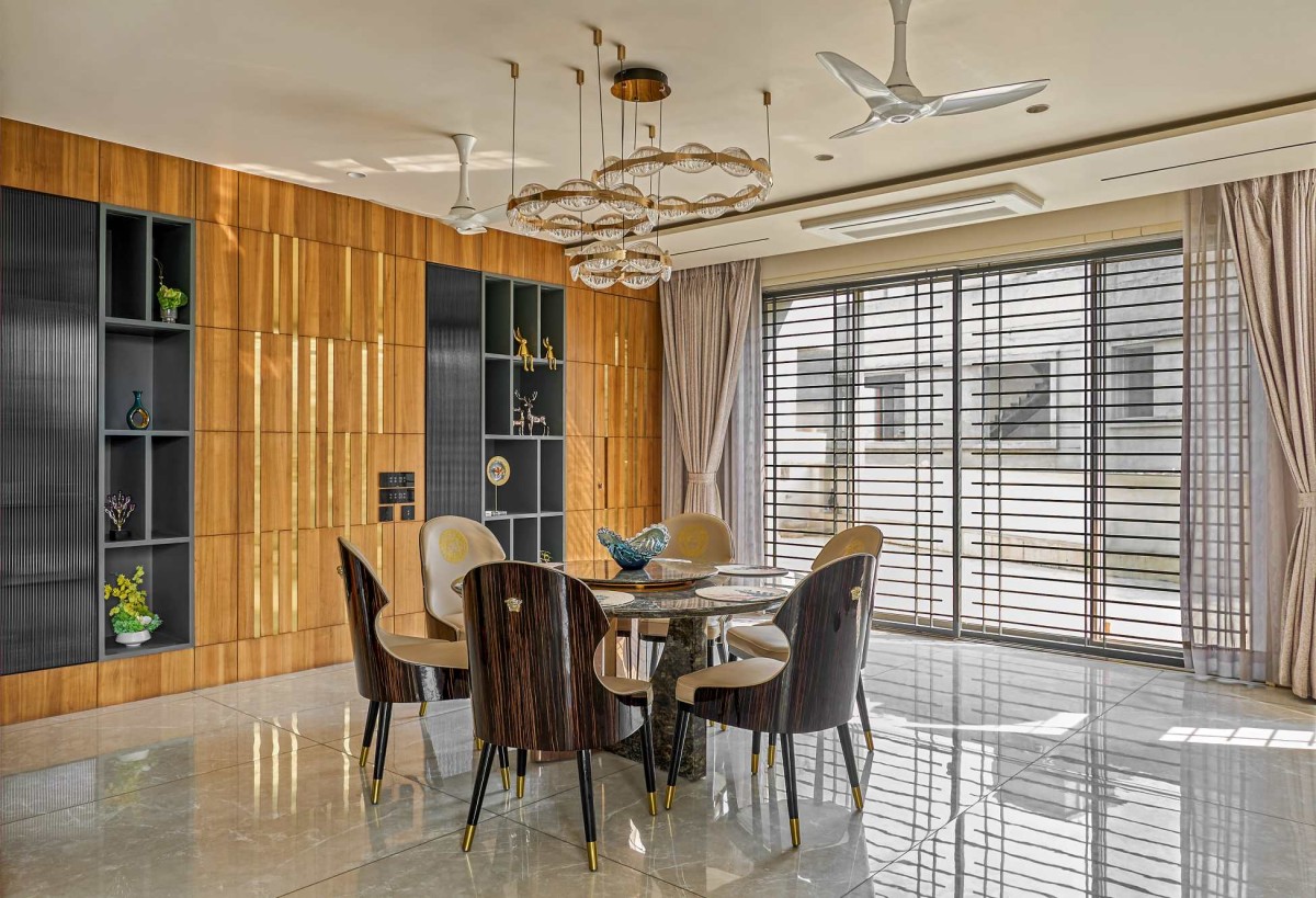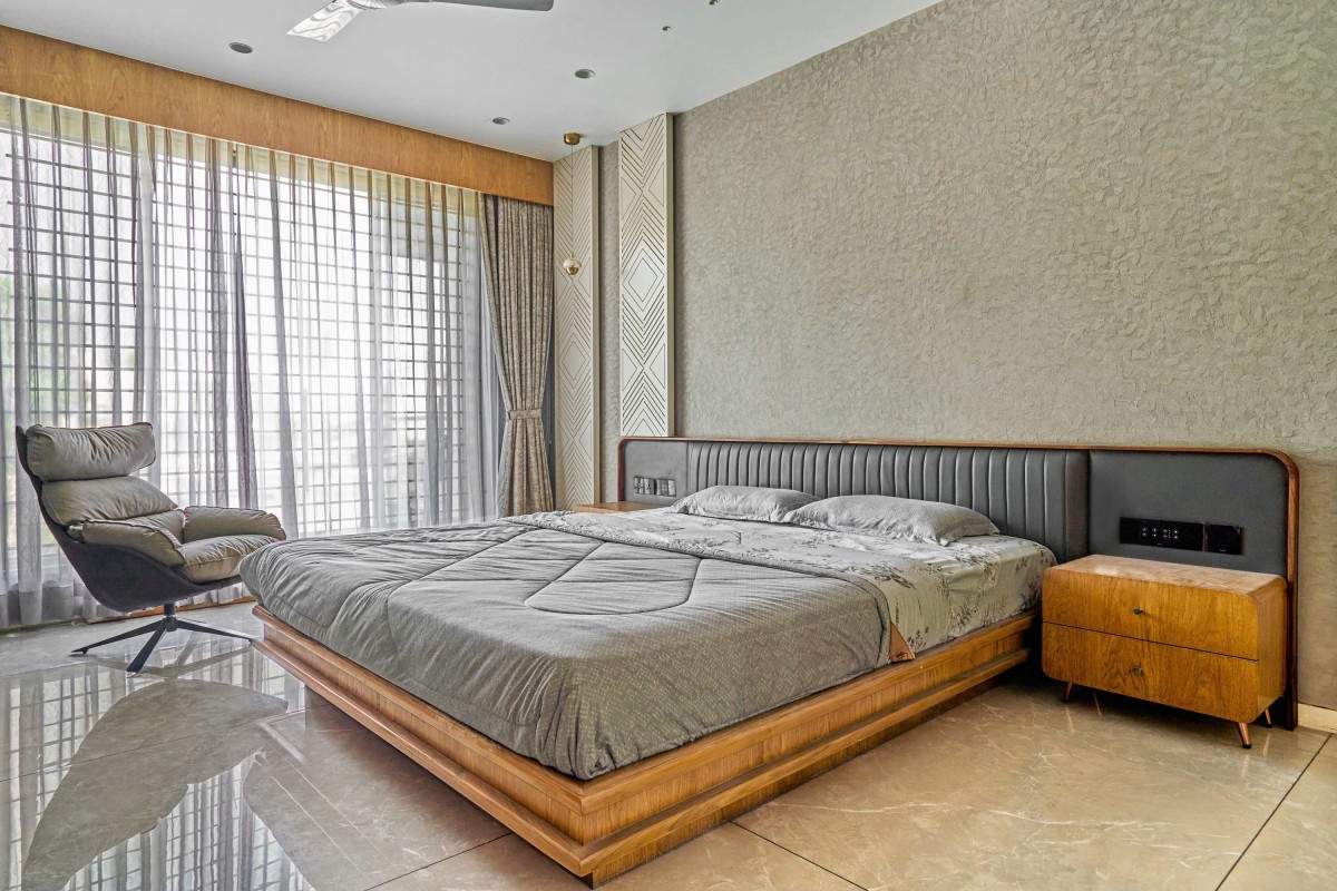 Shraddha is a bespoke residence for two brothers, Rajan and Nilesh, on a triangular corner plot. The initial brief was for twin bungalows with identical specifications, reflecting the common desire to visibly “separate” into two homes while sharing family land. The clients sought generous private spaces, clear segregation of individual families, and adequate parking and guest facilities. The challenge lay in resolving the awkward triangular geometry without compromising Vastu, privacy, or architectural dignity. The final brief—evolved through dialogue—was to create two fully equipped, independent family homes within a single, unified bungalow that expresses togetherness, offers crafted and personalized experiences for each family, and presents one strong, elegant frontage to the city.