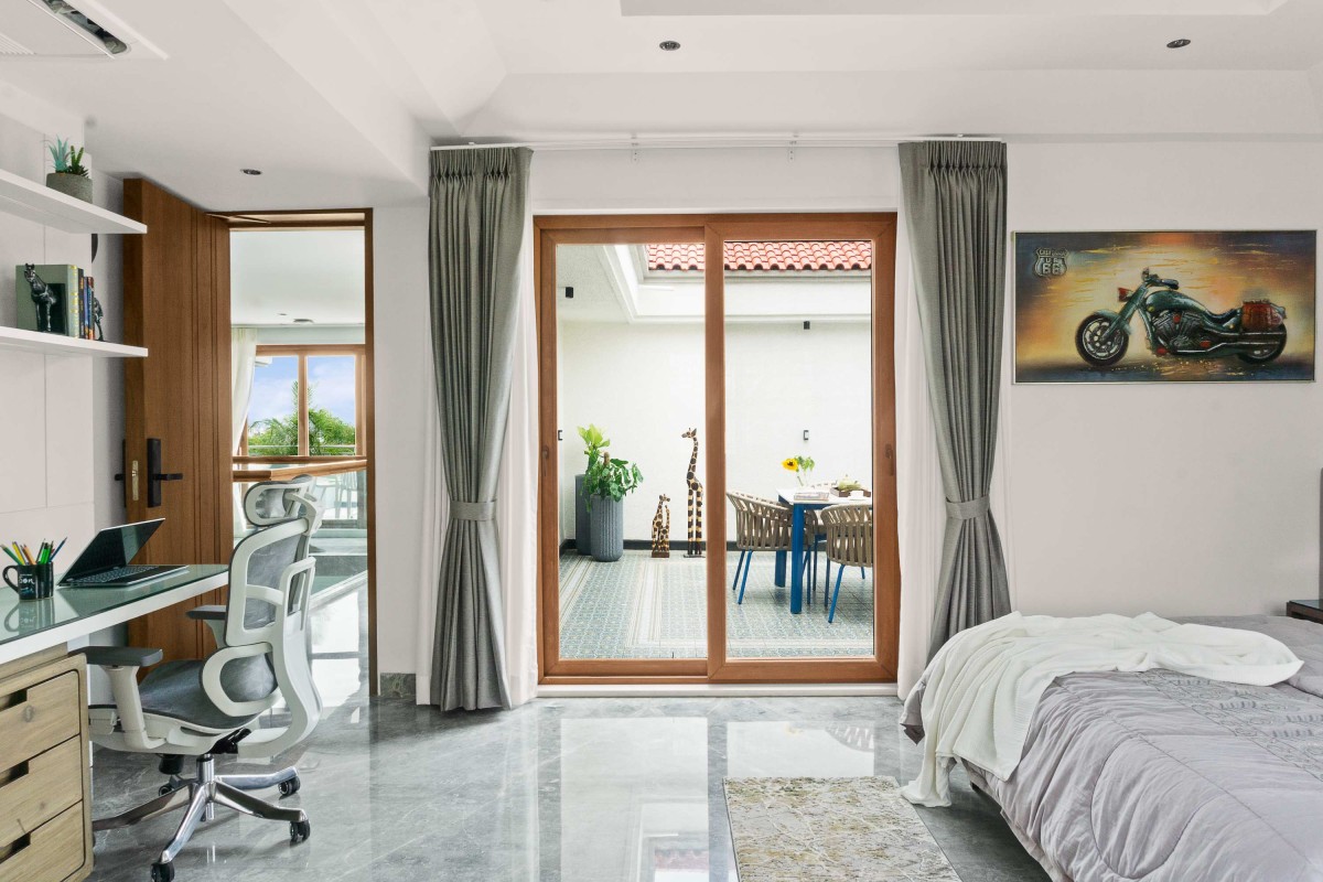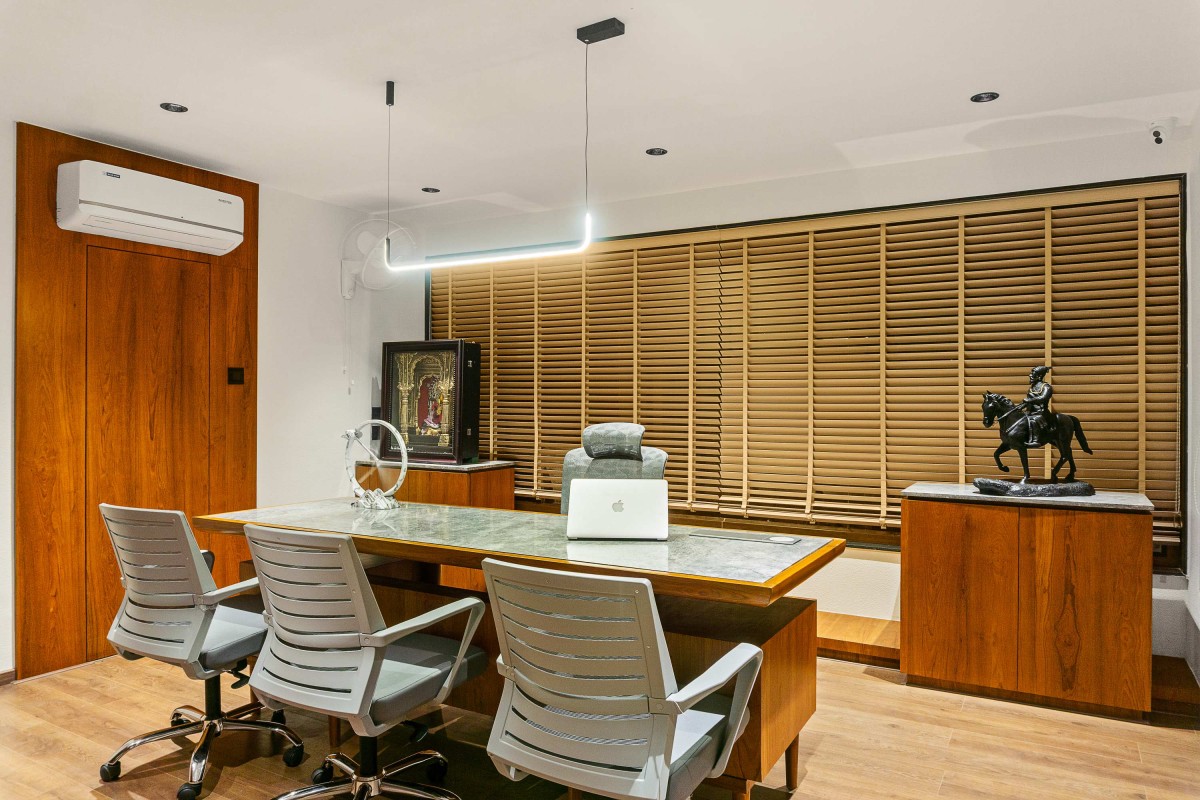 But what truly sets this residence apart is not just the balance in its materials or form; it is the way it holds both memory and modernity, equally and with grace. It is a home where grandparents rise to the sound of temple bells, where children race through corridors lined with heritage carvings, and where every room has its own story to tell.