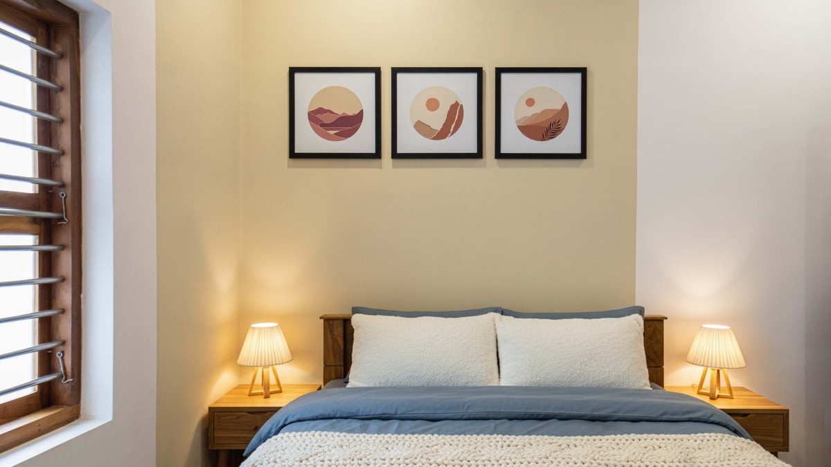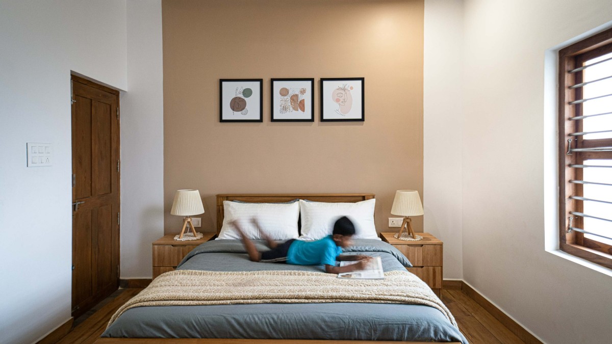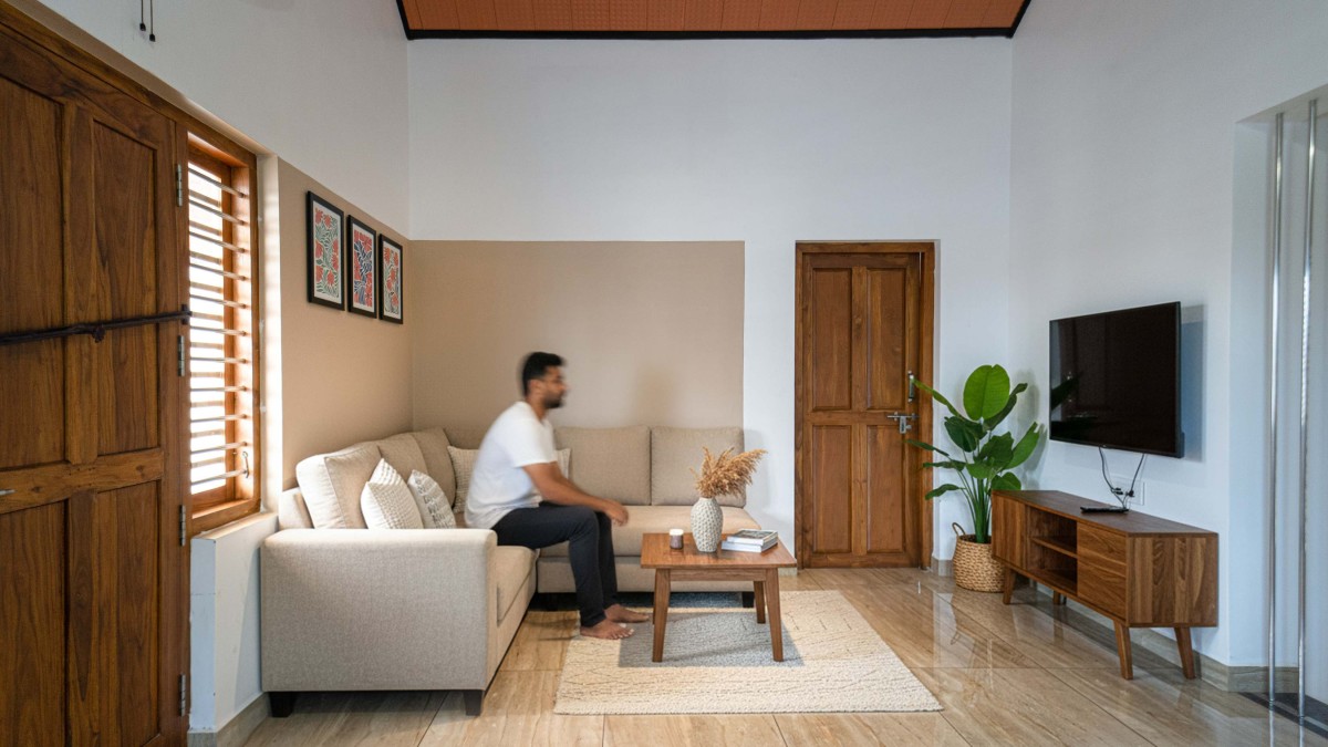 If the exterior gathers harmony from its dialogue with land and sky, the interiors extend that harmony into a choreography of light, warmth, and lived intimacy. Every room is composed with restraint, allowing material and mood to speak with equal clarity. Scandinavian calm meets Kerala soul as muted gradients of beige, terracotta, and warm timber create an atmosphere of softness without excess.