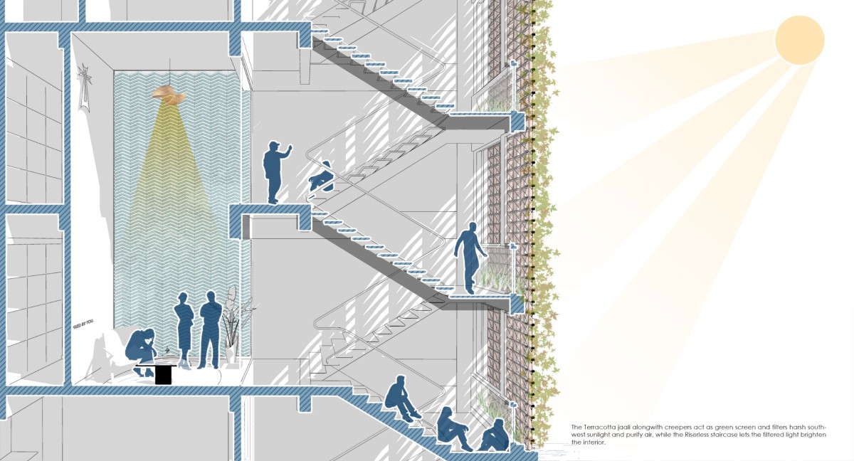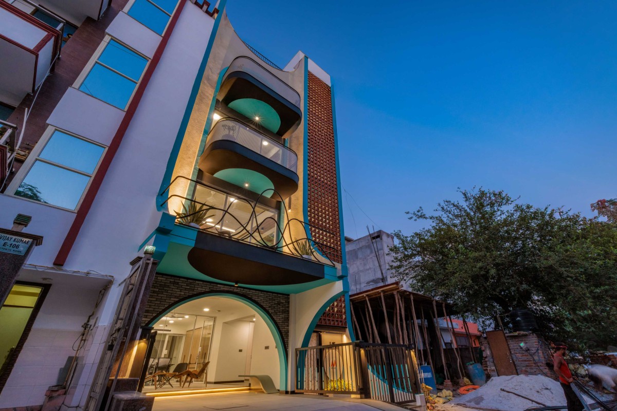 Every art form holds the potential to inspire another. In this project, the architect draws from the harmony of a perfectly orchestrated musical symphony to compose a built form that sings within a tight urban context. The façade becomes a visual sonata —shaped by consciously curated proportions, a distinctive palette of cool tones against warm terracotta, and a dynamic interplay of materials.