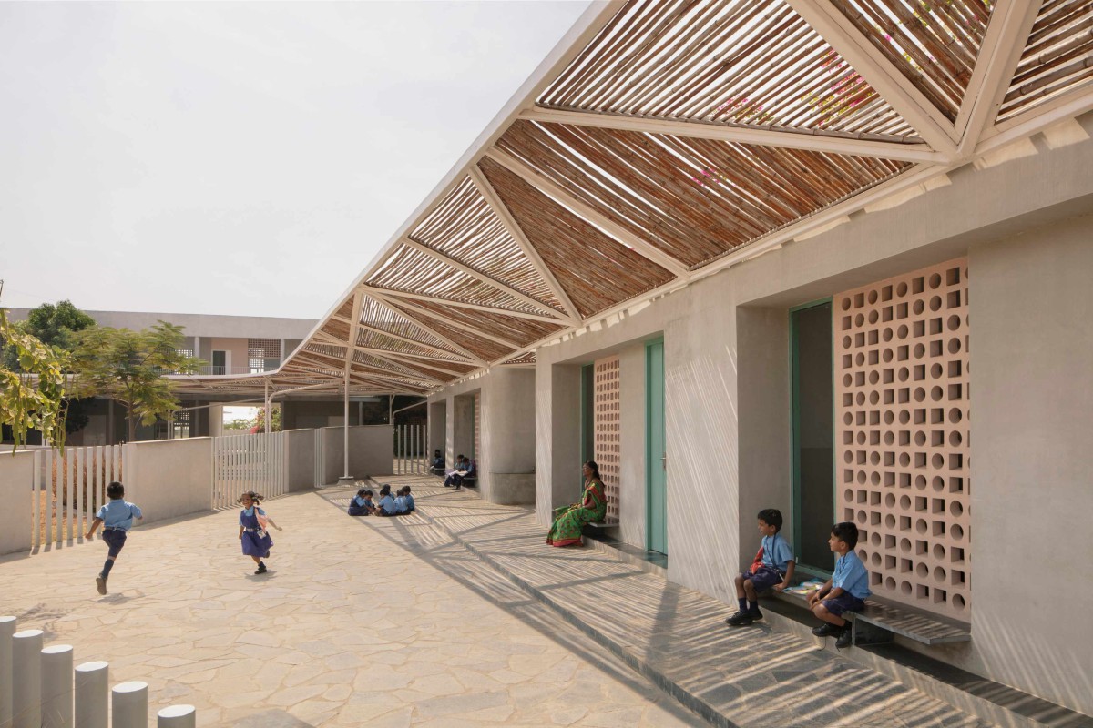 Entrance court of Talaricheruvu Rural School by CollectiveProject