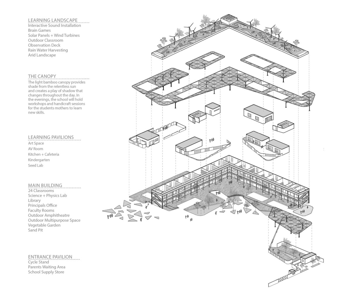 Axonometric plan of Talaricheruvu Rural School by CollectiveProject