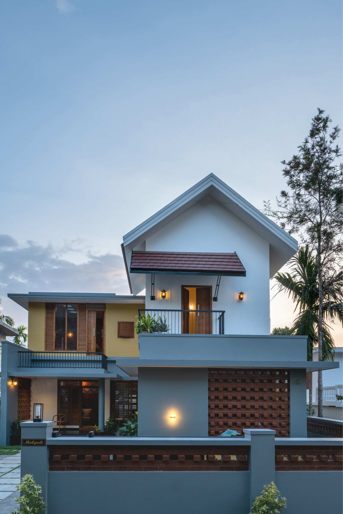 Dusk light exterior view of Teacher's Home by Nestcraft Architecture