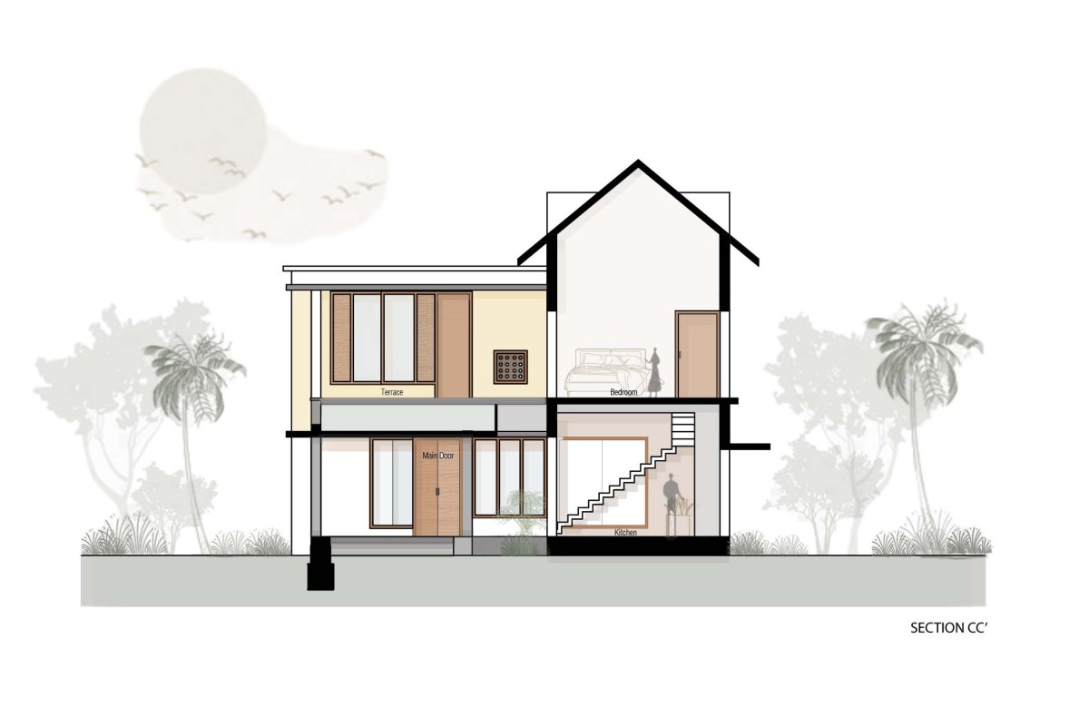 Section CC of Teacher's Home by Nestcraft Architecture