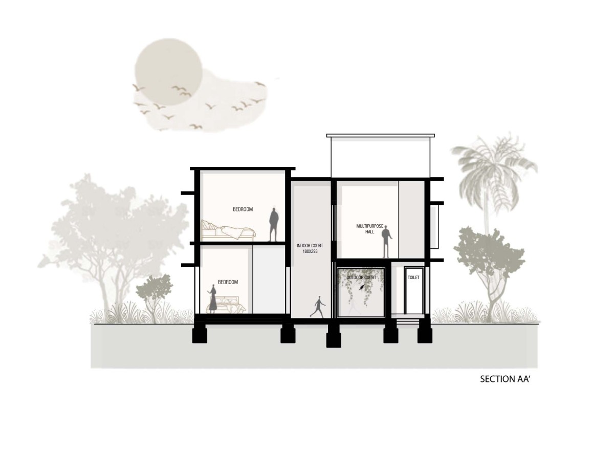Section AA of Teacher's Home by Nestcraft Architecture