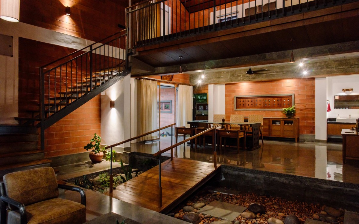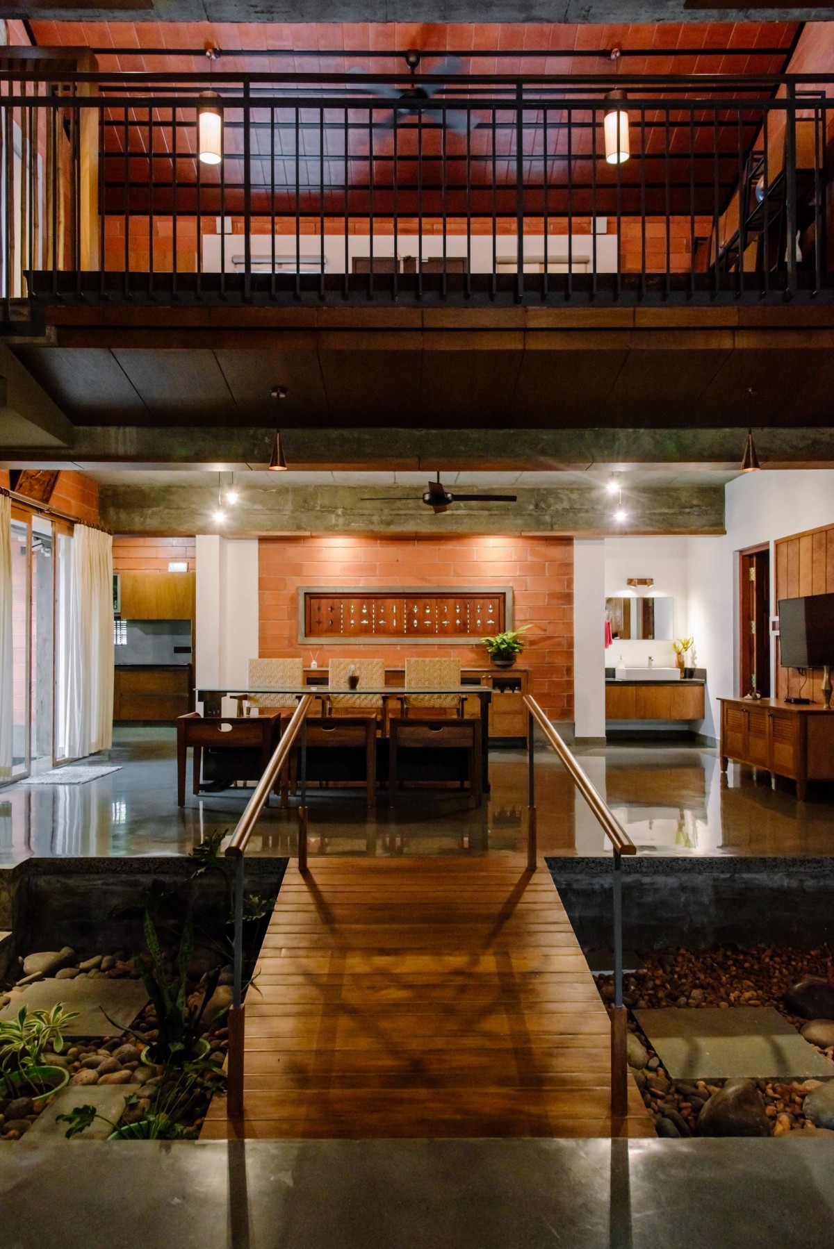 Bridge to dining area of Thadathil House by DD Architects