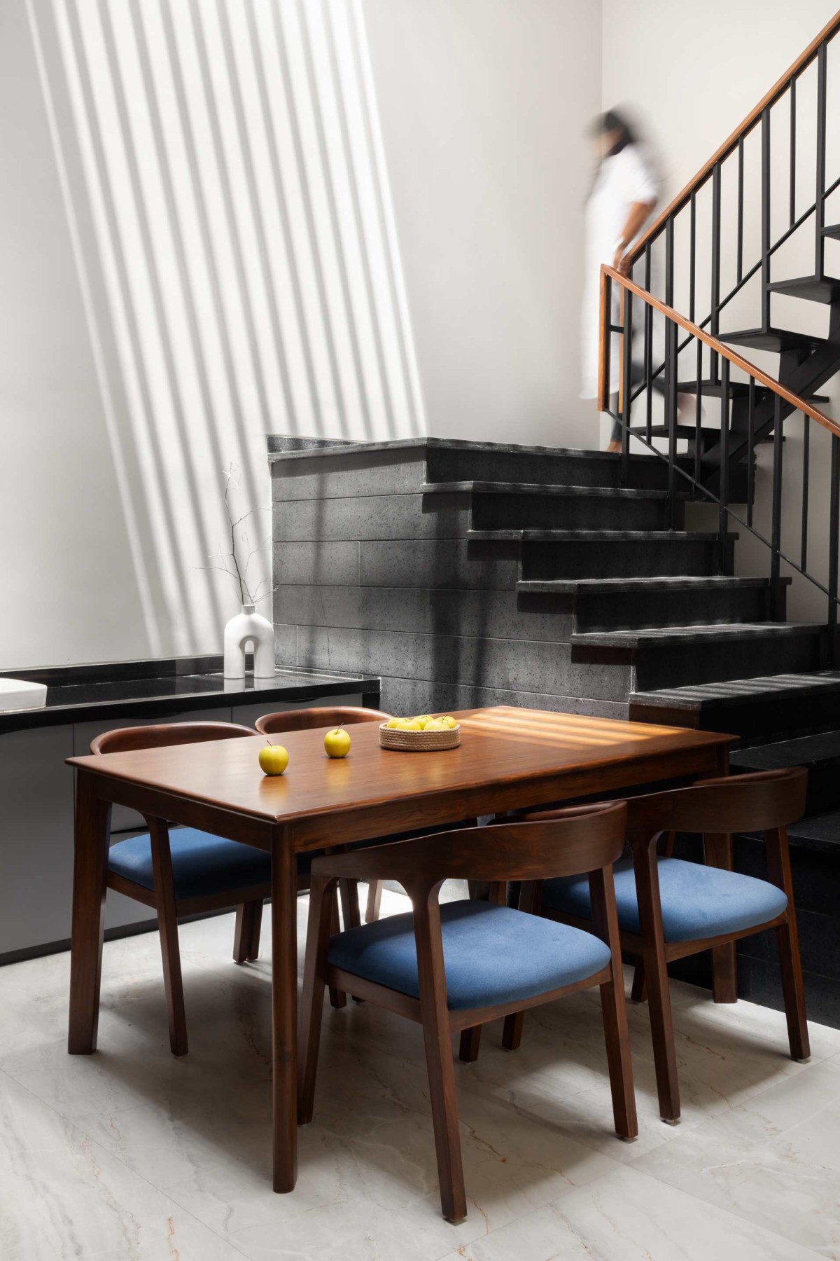 Built using local Red baked bricks, the house intentionally mirrors the city’s historic fabric while offering a contemporary living experience.