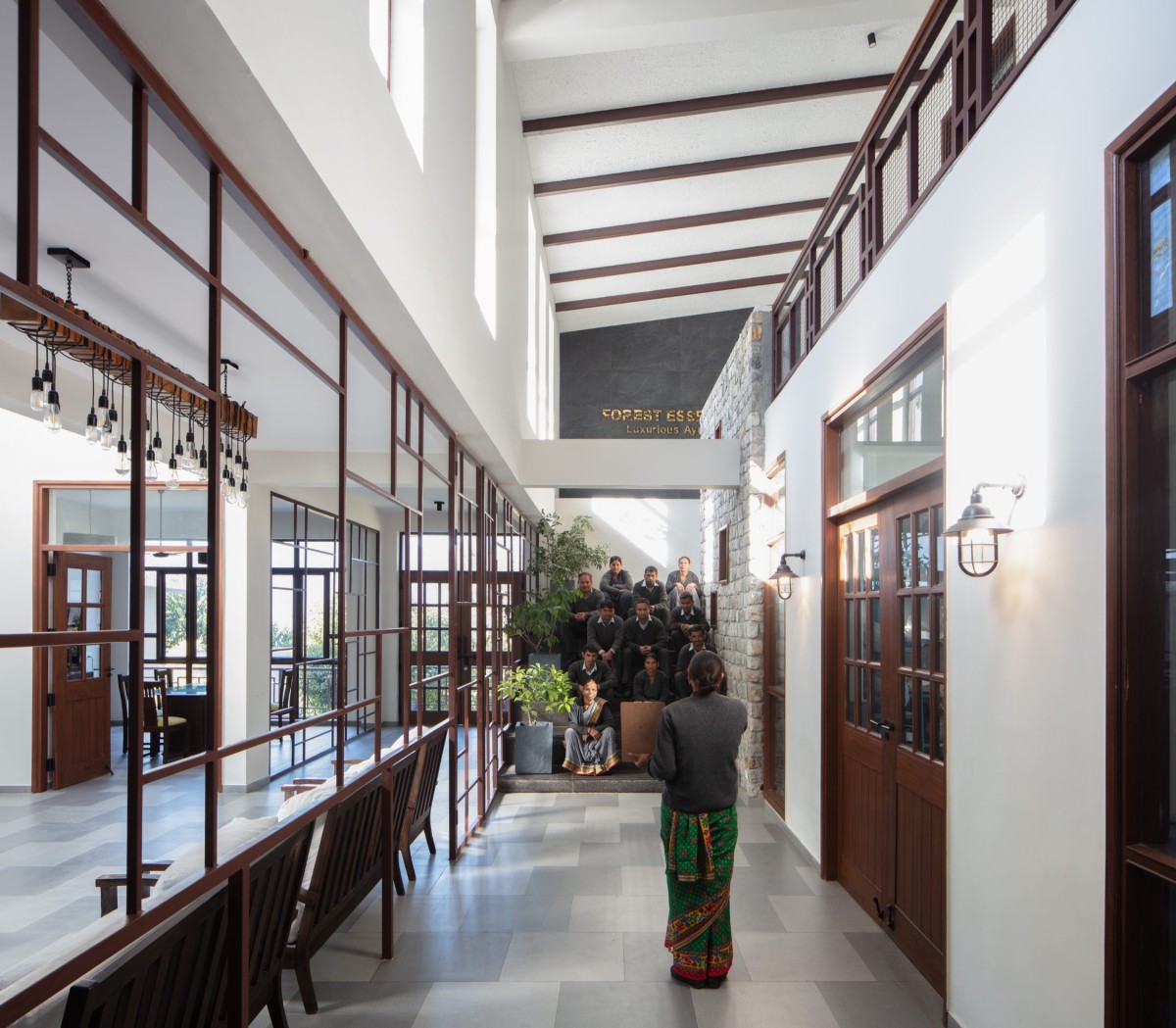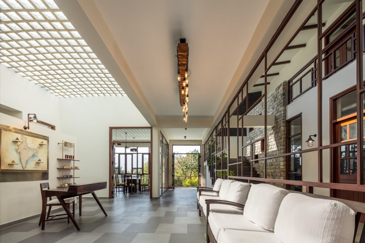 Double Height Foyer of The Lodsi Community Project for Forest Essentials by Morphogenesis