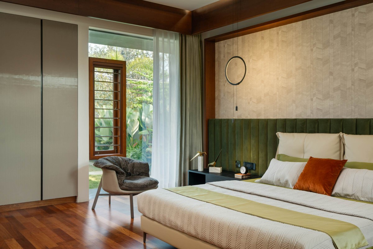Master bedroom of The Long House by Crest Architects