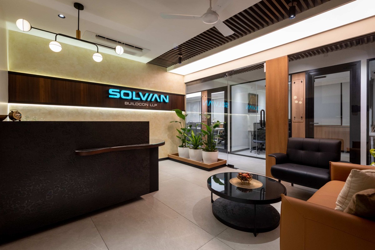 The design of the office is anchored in functionality while exuding a welcoming character. The reception area sets the tone with statement lighting and a branded feature wall, creating an immediate sense of identity and presence