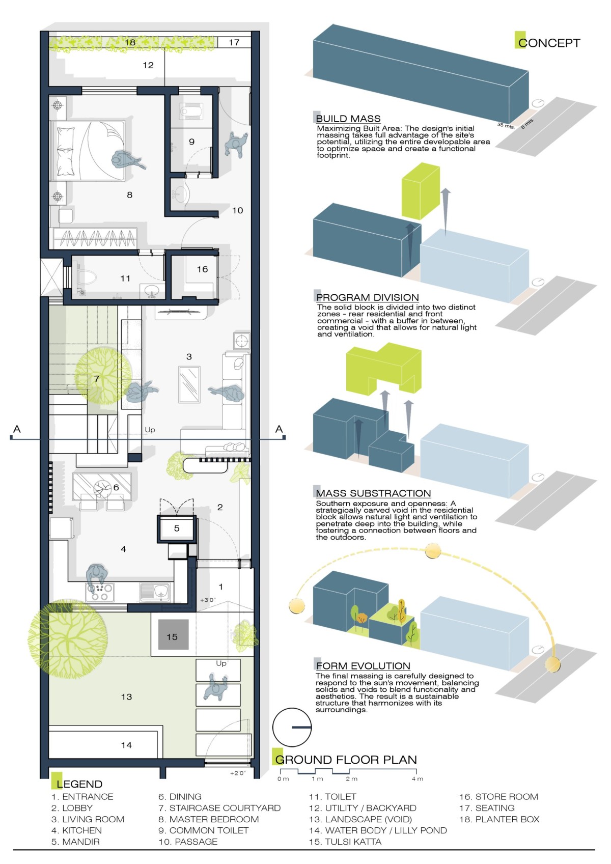 Ground Floor Plan of The Narrow House by Sense of Space Architecture Studio