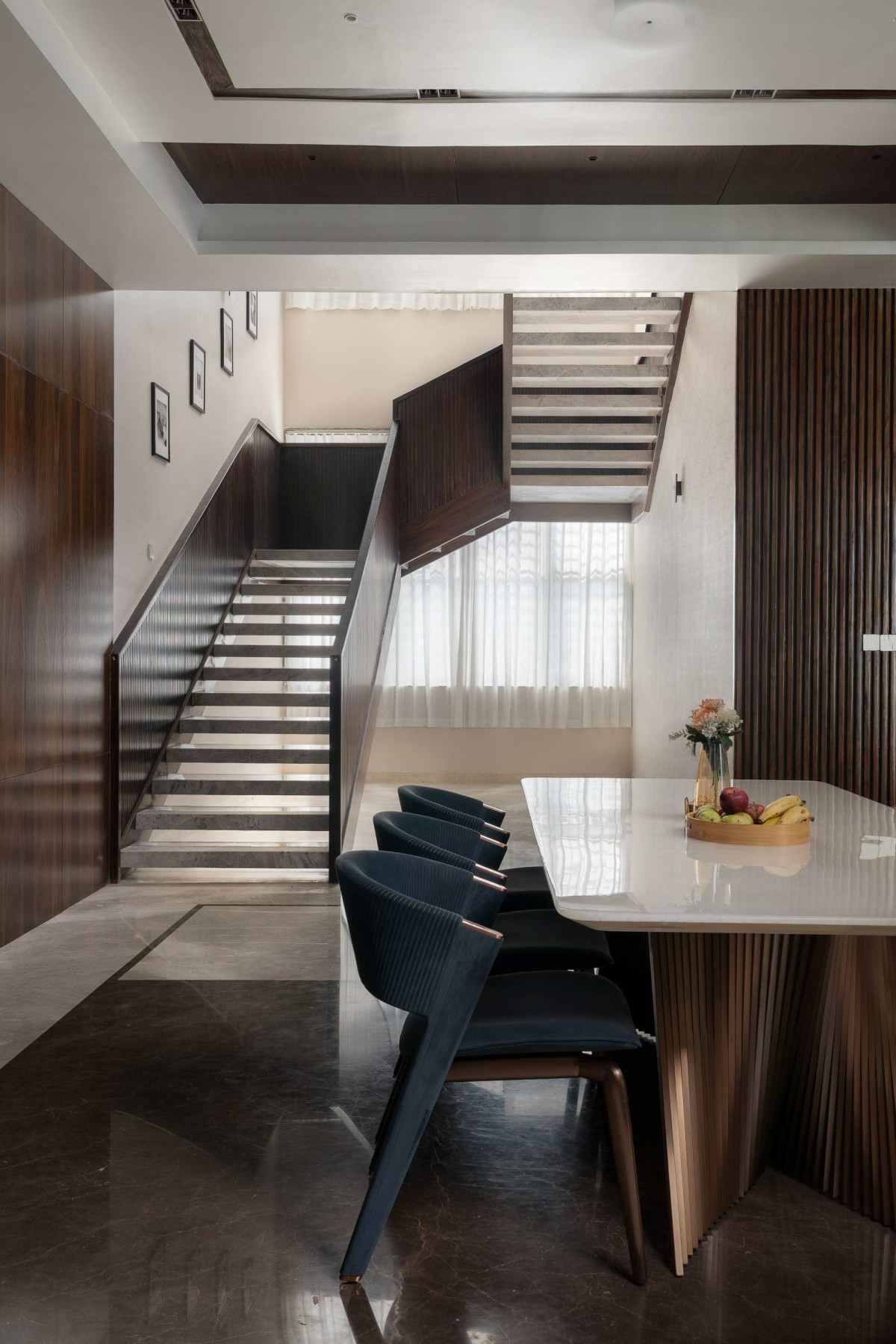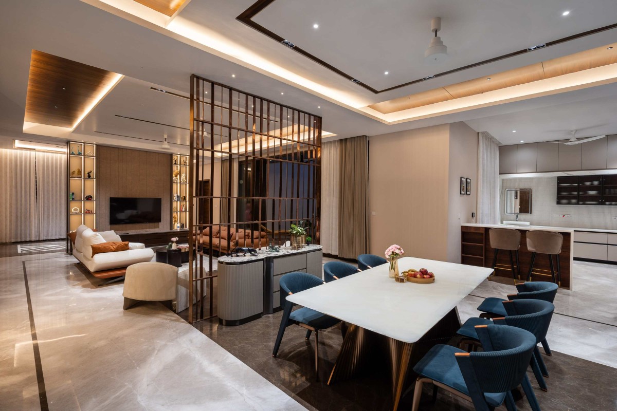 Dining to Staircase view of The Overhang Pavilion by Vyuham Design Studio