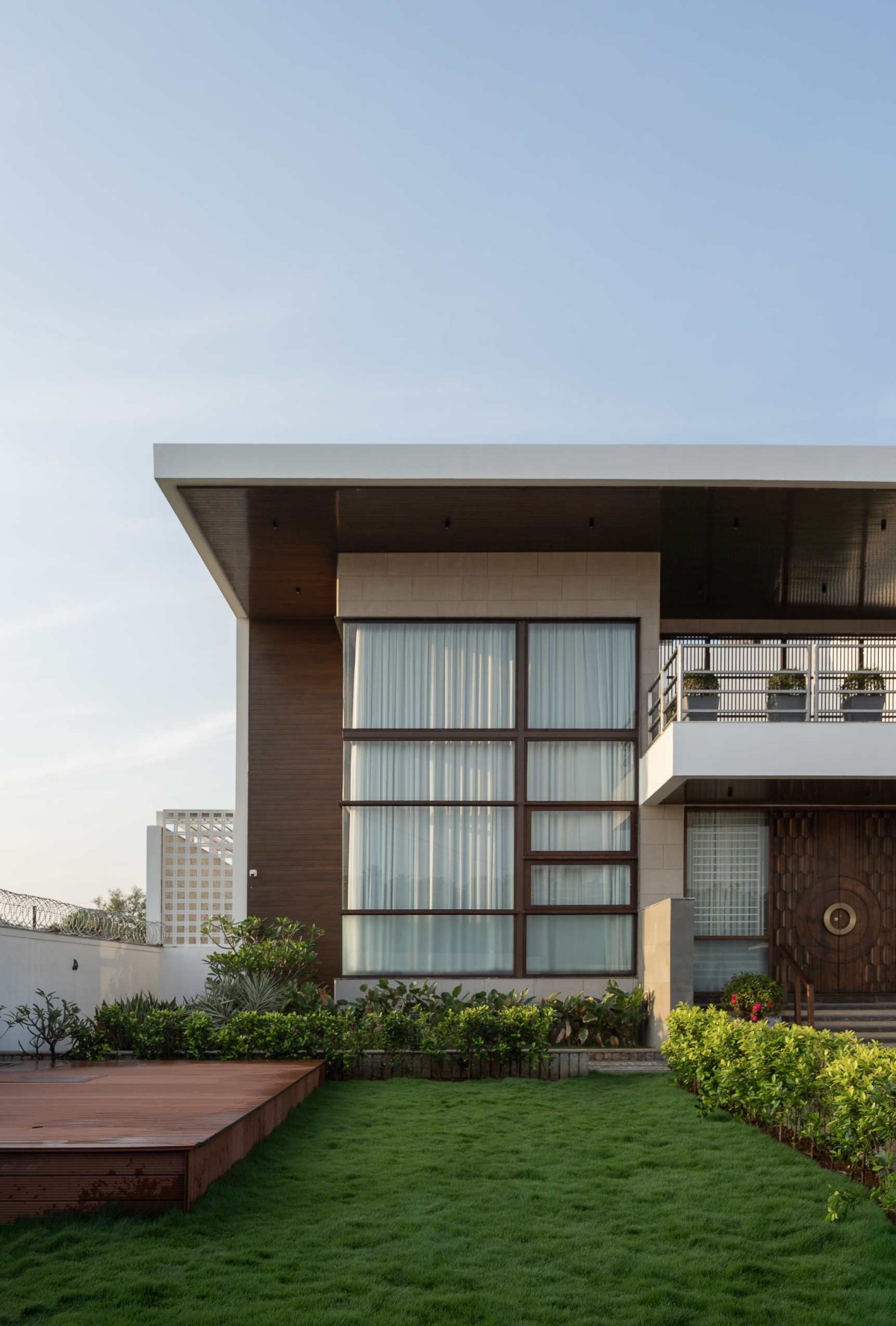 Lawn view of The Overhang Pavilion by Vyuham Design Studio