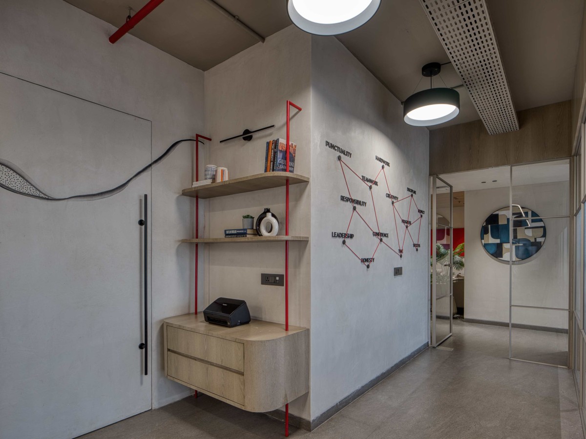 What sets The Red Core apart is its ability to merge minimalist-modern aesthetics with a strong brand narrative. Exposed services, controlled materiality, and a precise colour strategy come together to create a refined yet energetic workplace. The office functions not just as a place of work, but as a spatial reflection of Gayatri Microns Ltd.’s values.