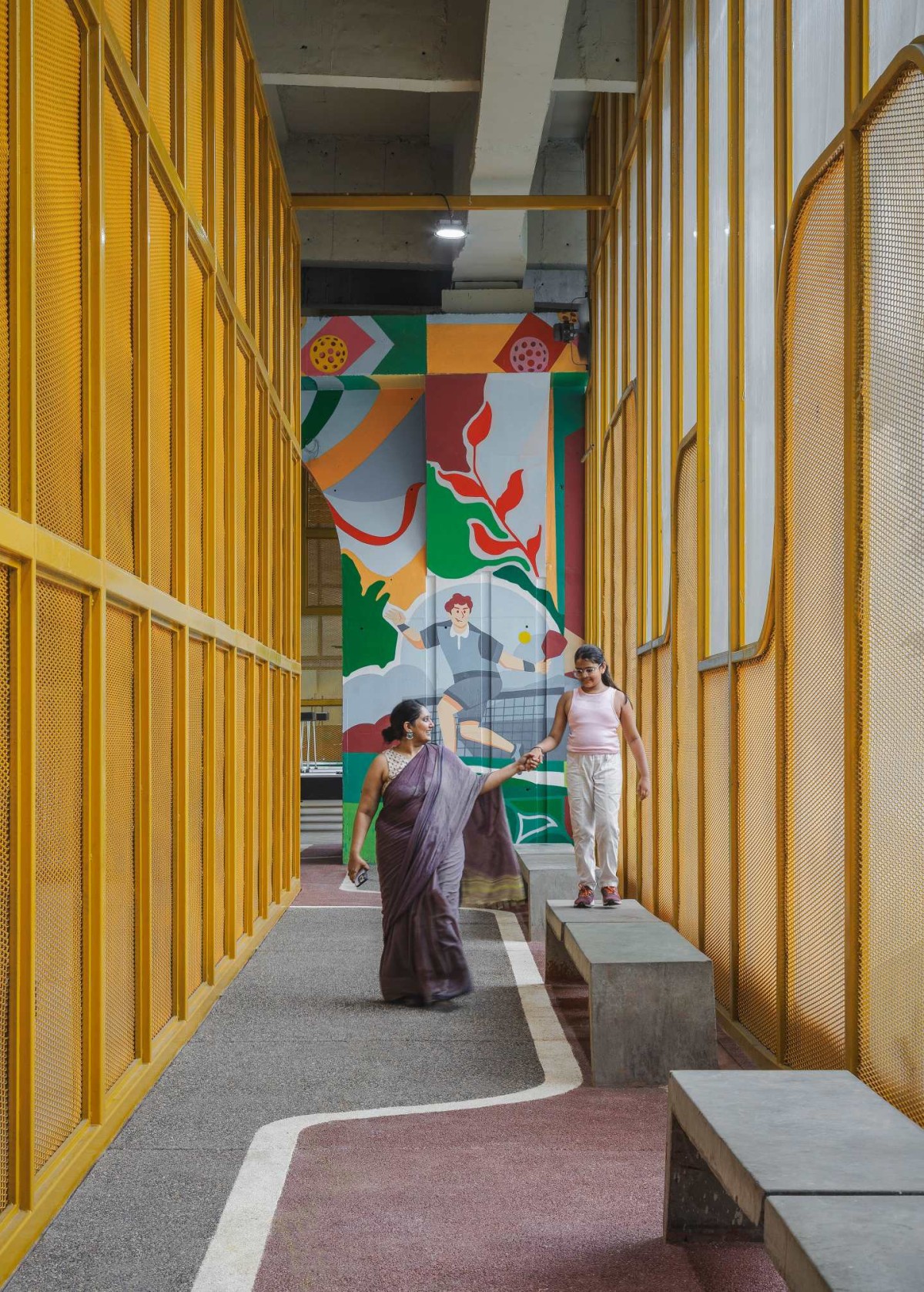 Passage that connects play area of The Under Space Revival by Aangan Collaborative LLP