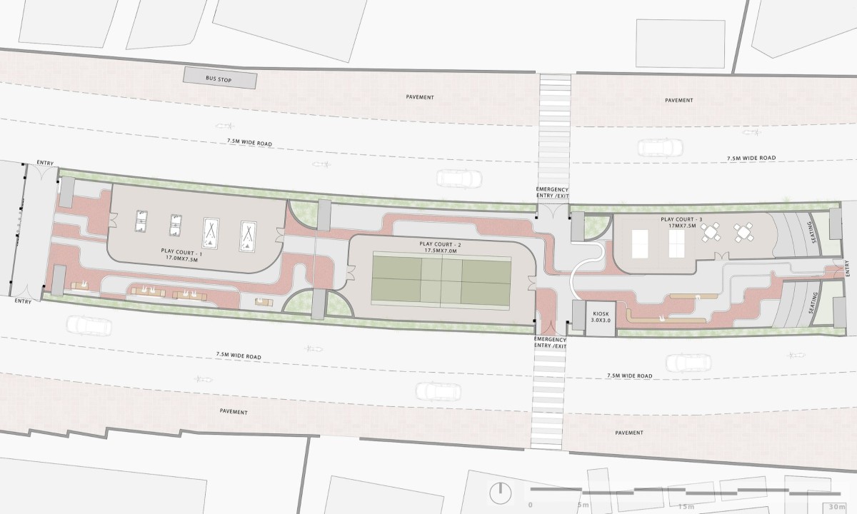At the heart of the project lies a strong commitment to urban equity. The idea that beauty, dignity, and well-designed public spaces should be accessible only to a select few is challenged head-on. By activating the underside of the flyover—a typology typically associated with neglect—the project raises a larger civic question: Why should high-quality public spaces and recreational environments be confined to privileged zones? Why should the everyday urban experience be compromised for the majority? Through its sensitive design choices, the intervention positions itself as a counterpoint to this disparity, arguing that inclusive spaces can and should emerge from the most unexpected corners.