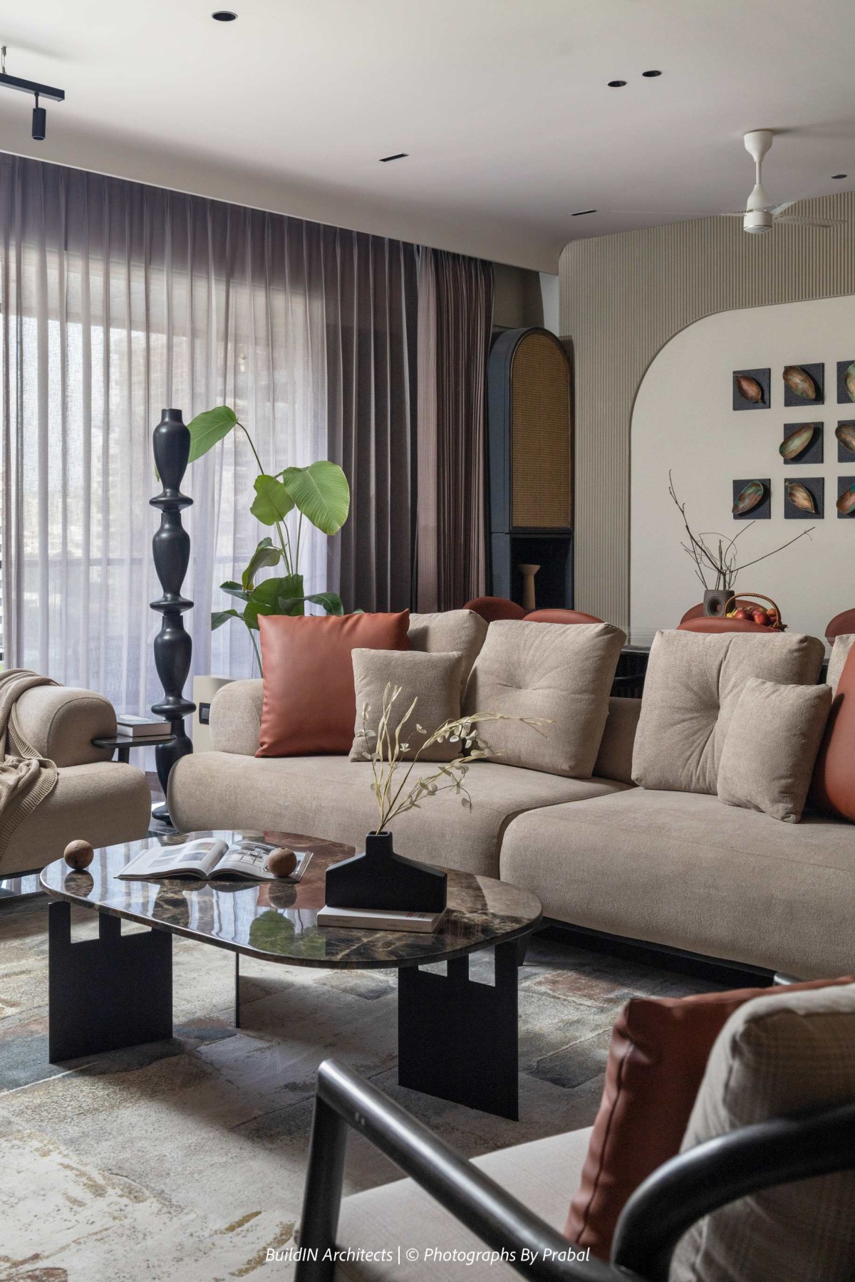 The living space celebrates the art of contemporary refinement, where understated luxury meets thoughtful detailing. Defined by a harmonious palette and tactile materiality, the design exudes a sense of quiet sophistication and spatial coherence.
