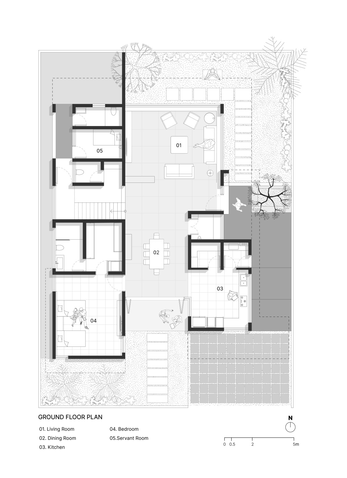 Ground Floor Plan of Two Solids and a Semi Void by Thirdspace Architecture Studio