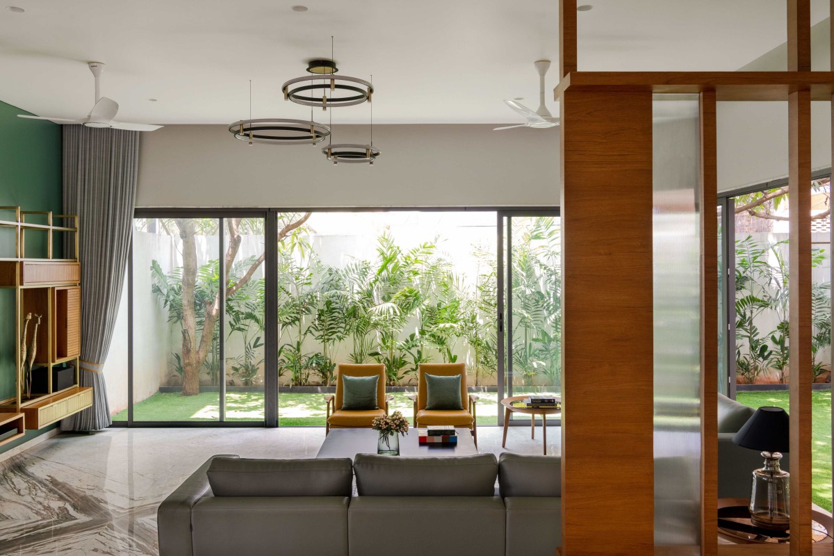 Living room of Two Solids and a Semi Void by Thirdspace Architecture Studio