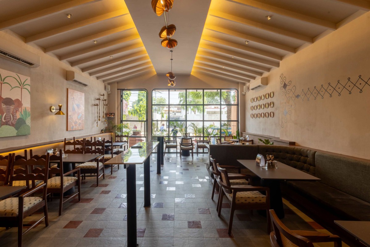 Situated within Kanpur’s evolving urban fabric, the restaurant positions itself as a distinctive addition to the city’s hospitality landscape. It proposes an alternative to overt thematic design, instead offering a culturally resonant yet contemporary environment. Through abstraction rather than imitation, and restraint rather than spectacle, the project demonstrates how interior architecture can reinterpret regional identity within a modern context.