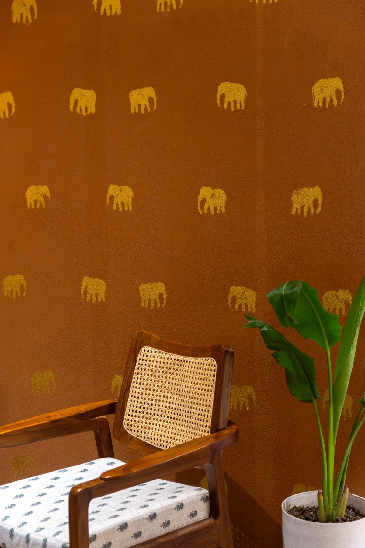 Materiality forms the conceptual anchor of the project. A restrained palette of terracotta hues, warm neutrals, soft browns, and charcoal undertones establishes a grounded visual identity. Earthy textures and natural finishes — including wood, stone, lime-based plasters, and woven fabrics — are expressed in their honest state, celebrating grain, variation, and imperfection. These surfaces evoke the tactile richness of South Indian architectural traditions while maintaining a contemporary restraint. The interplay of matte and textured finishes creates depth without visual excess, reinforcing the project’s quiet sophistication.