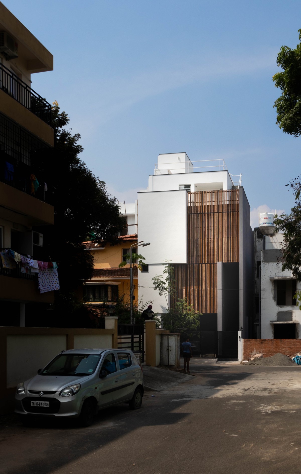 As the name suggests - a small site measuring 7 x 17m sandwiched between two existing houses (Tamil Nadu housing board of yester years built these twin houses to promote the neighbourhood) is to be developed as a private residence.