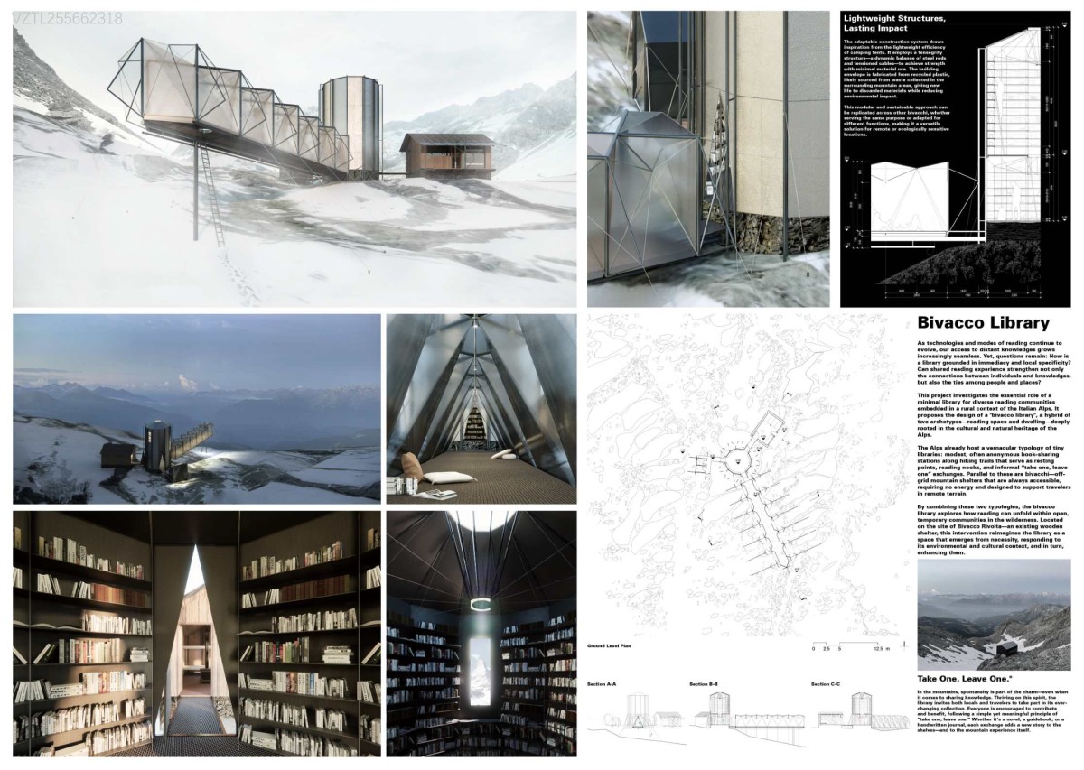 SECOND PLACE - Bivacco Library by Jinyue Hu & Xiang Li (United Kingdom)