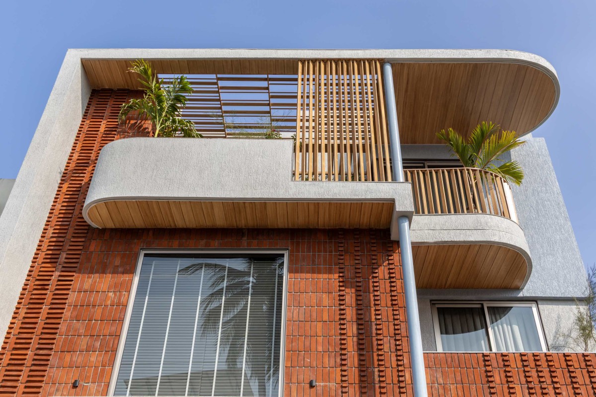 This house blends free flowing geometry, carved from built mass to open layout planning internally. The open pockets and volumes at different heights, invite interaction and connection with nature through corners designed as terrace gardens.