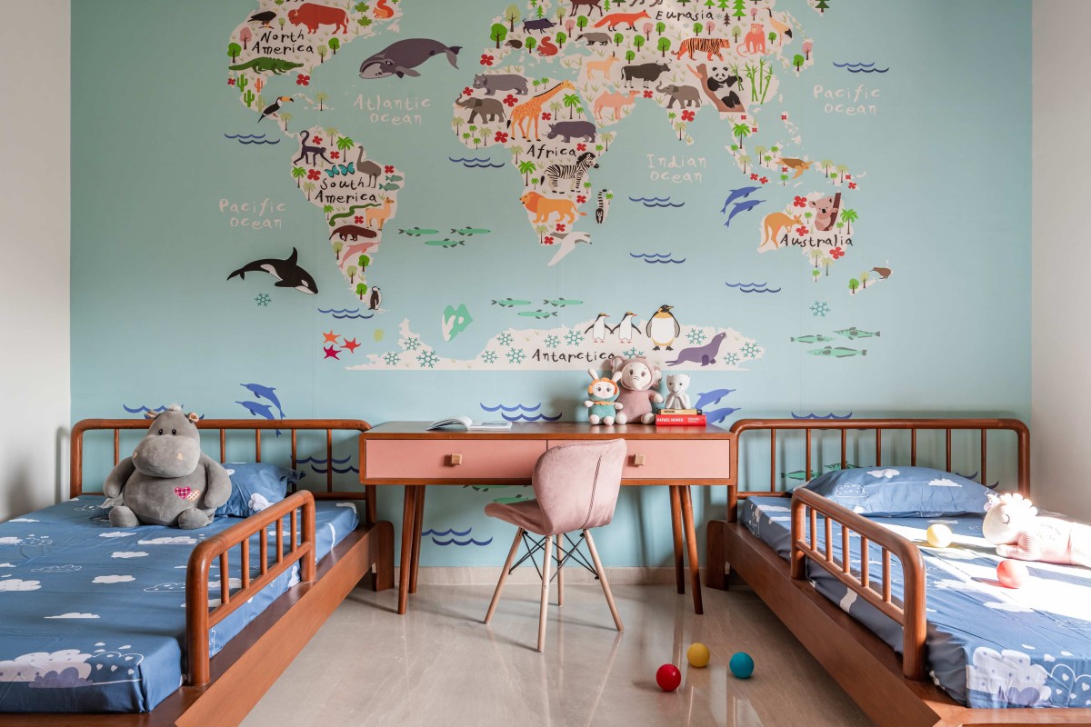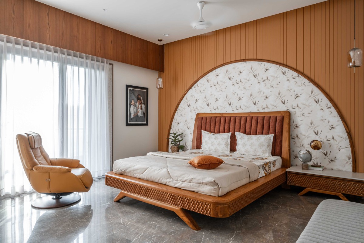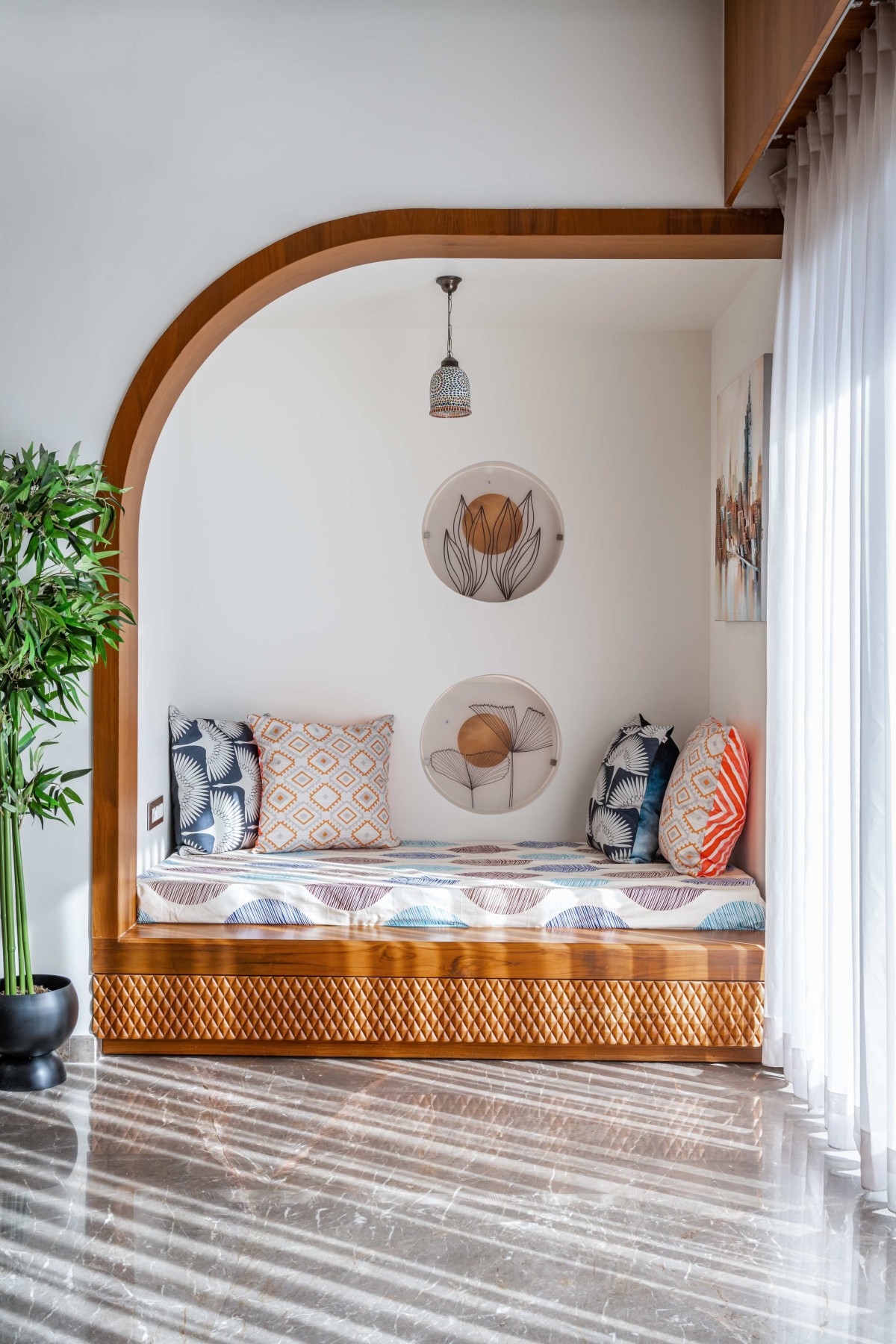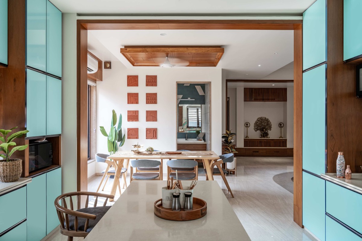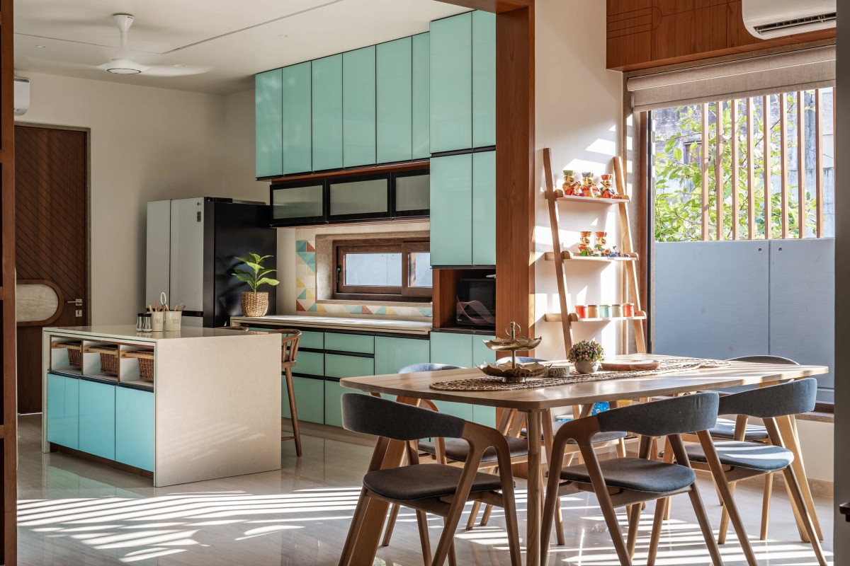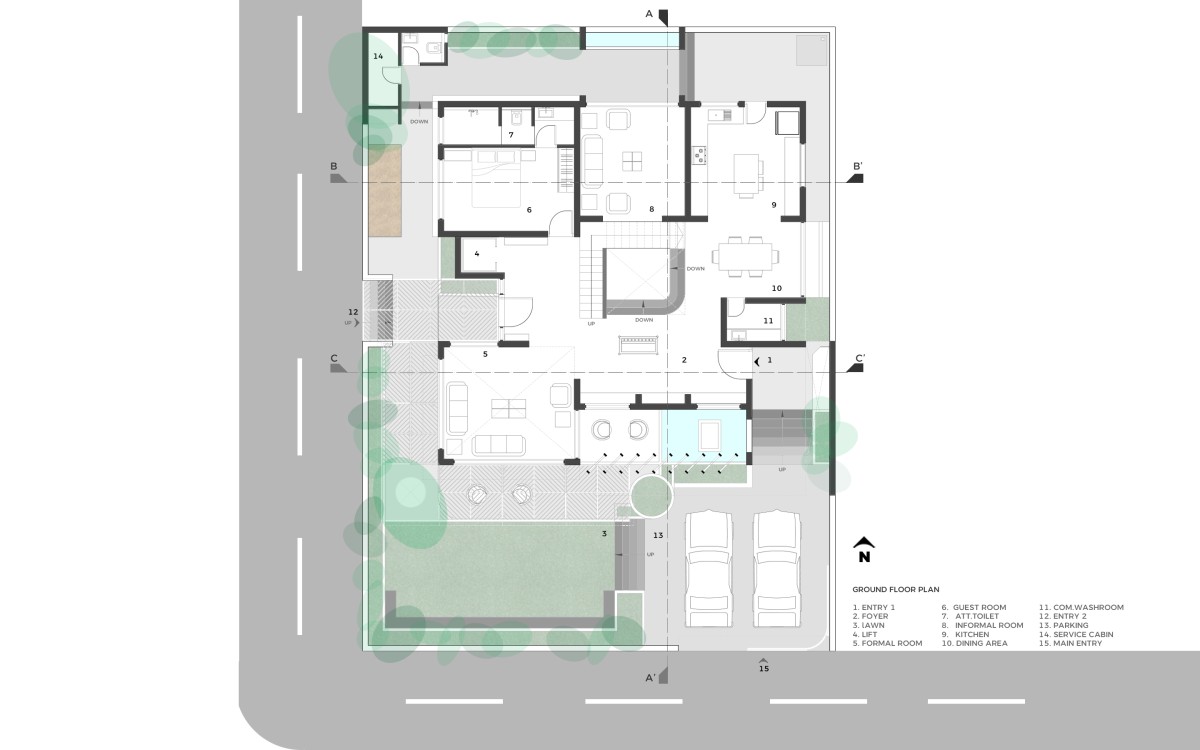 A combination of structural and aesthetic elements was used to create a configuration which is dynamic and provides spaces of varying heights, dimensions, and energies. While the central staircase creates visual lines between the floors above, it also gives way to a double height living room. Sweeping high ceiling makes up for a double height balcony in one of the first-floor bedrooms. The brick wall runs tall on the eastern façade of the building, providing a needed balance to the massing while also creating a focal point for the main circulation areas in the house, on all the floors.