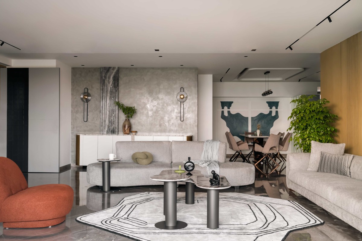 Living room of 4BHK Apartment at Akshar Iland By Scj Architects & Interior Designers