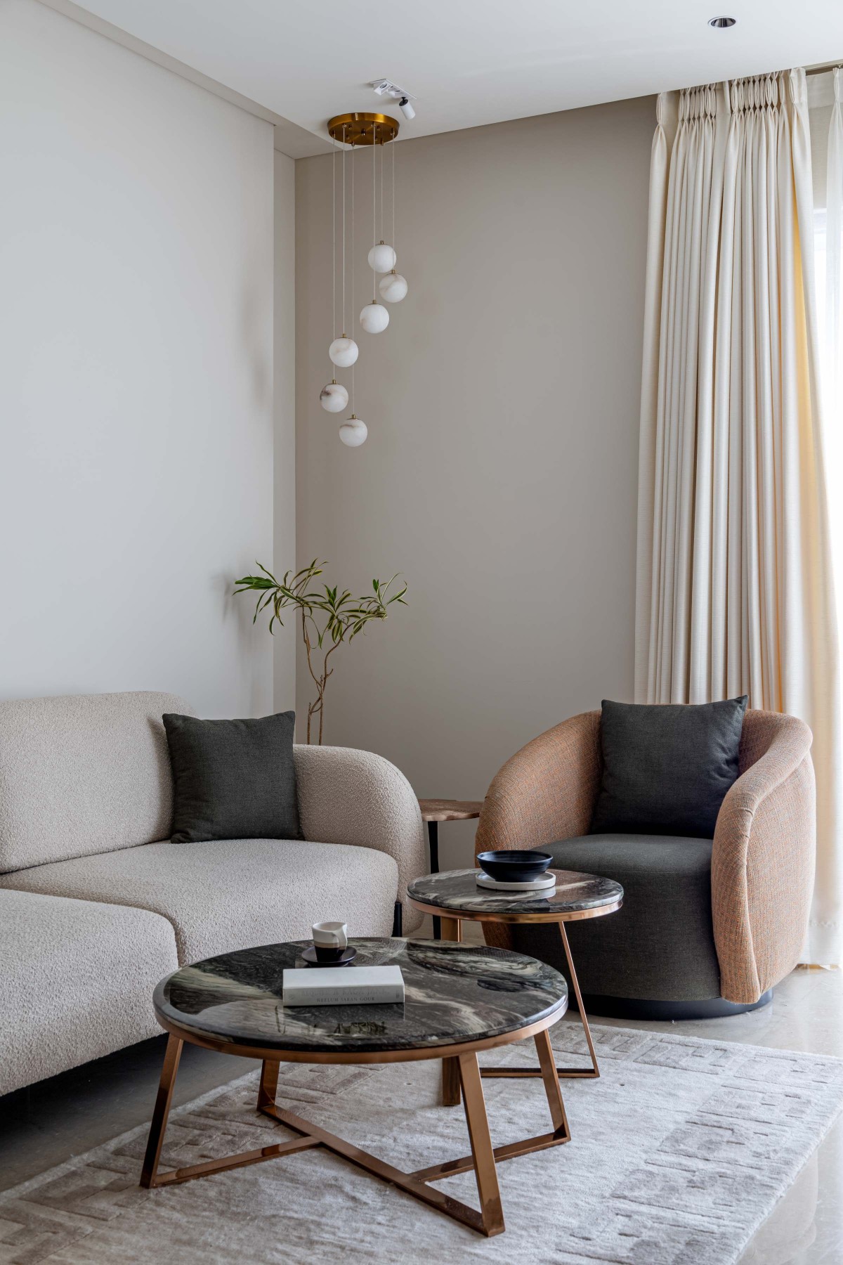 Across the home, a cohesive material story ties everything together: warm finishes, natural textures, and soft curves that repeat subtly from space to space. The palette feels serene yet grounded, creating an environment that is intuitive to live in and deeply reflective of the people who call it home.