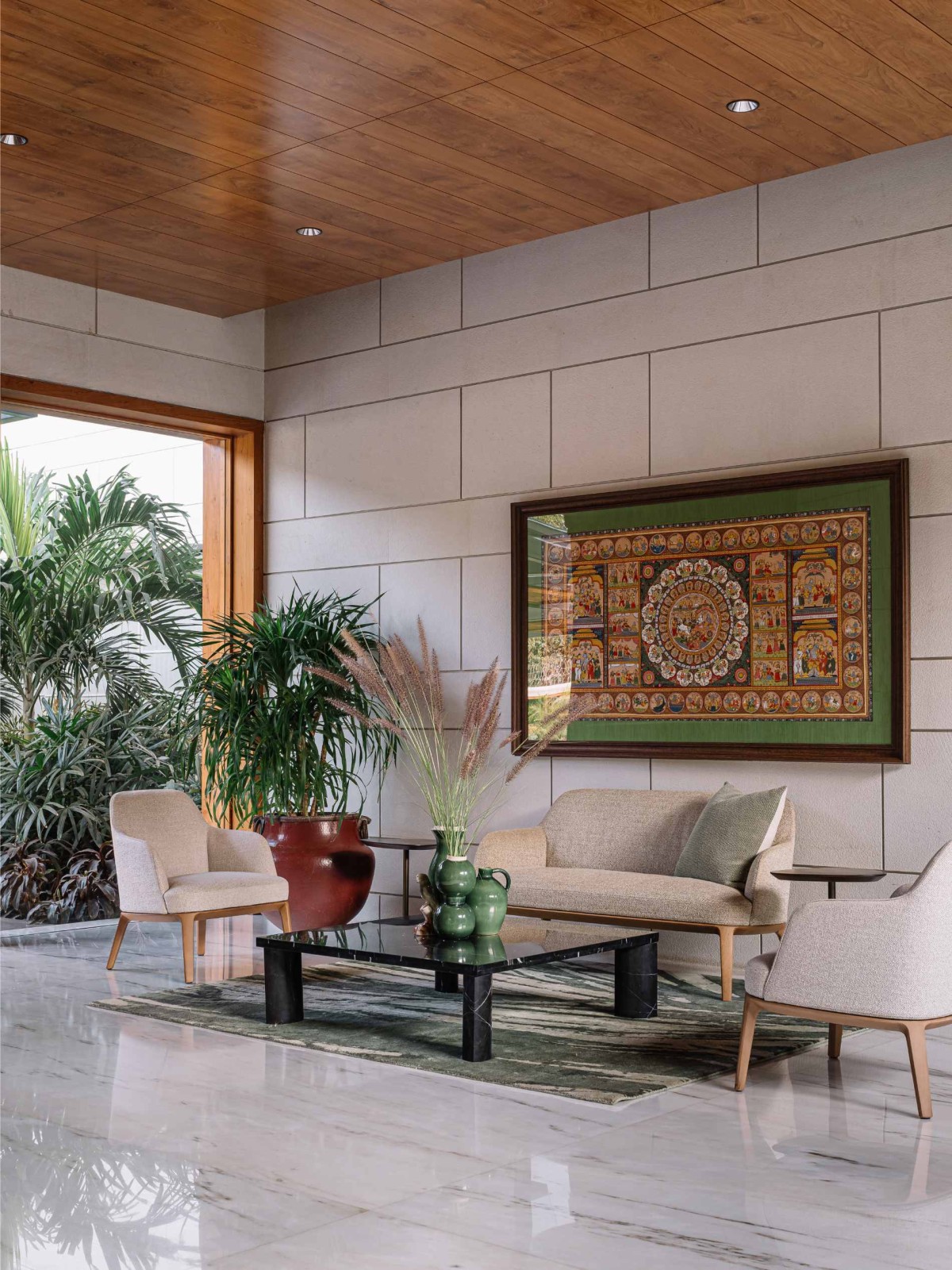 Formal living of Anand House by Hiren Patel Architect Design