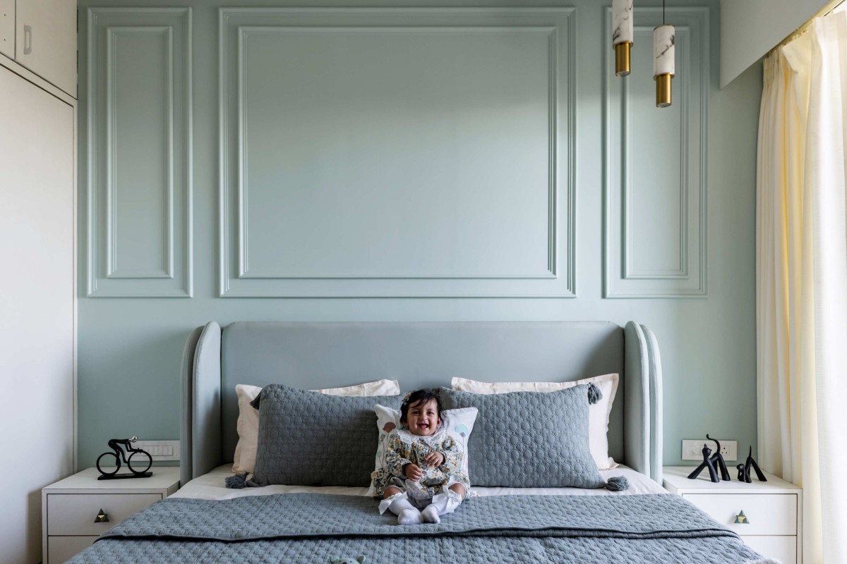Each of the three bedrooms carries a distinct theme, expressed through varied colour stories, textures, and lighting moods, while maintaining a cohesive design language. The false ceiling design plays a key role across spaces—treated as a visual element rather than a mere functional layer—using modern textures, clean geometric patterns, and indirect lighting to elevate ambience.