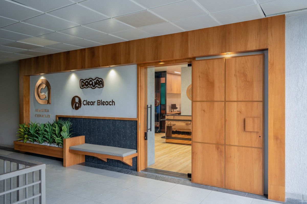 Office main entrance of Ashapura China-clay Office by Studio Revah