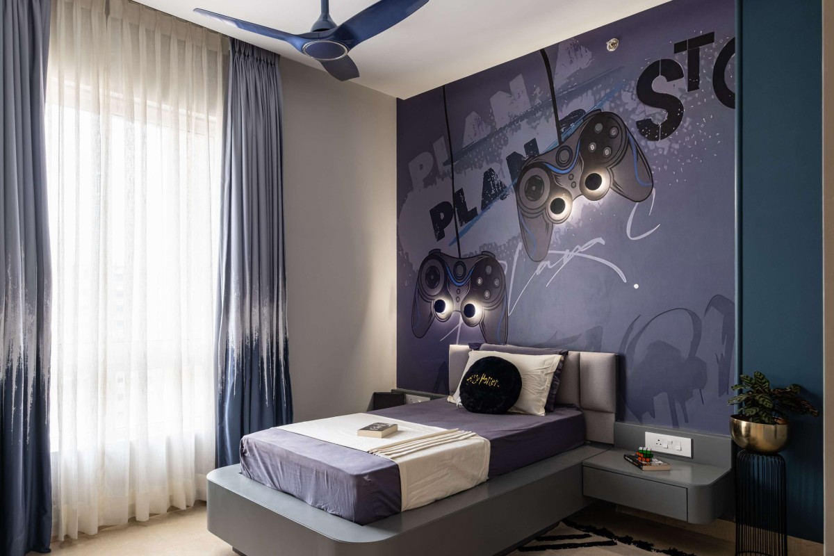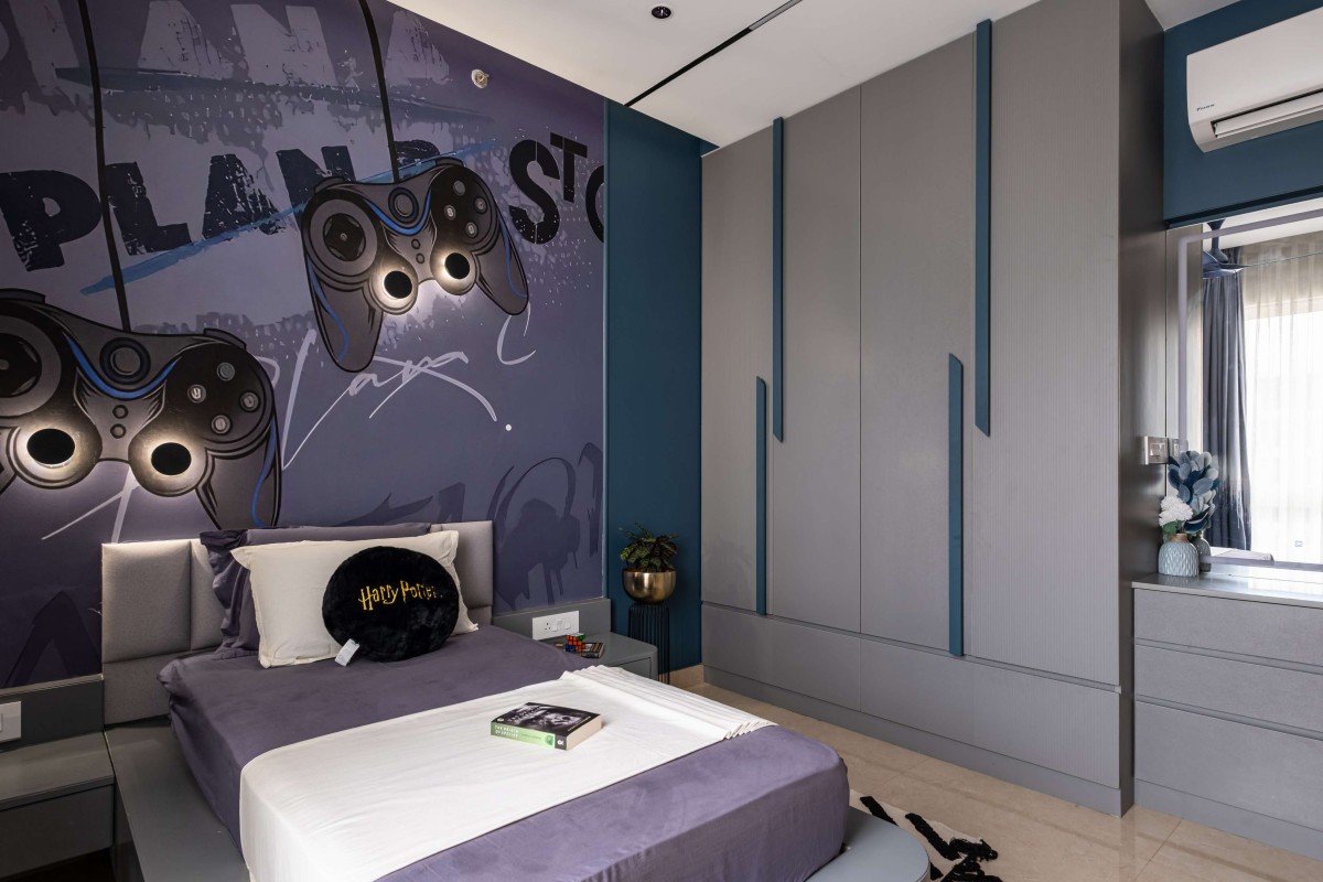 The teenage son’s room introduces a gaming-inspired theme interpreted through a minimalist lens. Sleek workstation furniture, ergonomic seating, and subtle integrated lighting provide both functionality and an immersive environment for gaming. The neutral palette is offset with darker accents and modern lighting elements, ensuring the room feels youthful yet cohesive with the rest of the home. Intelligent storage solutions keep gaming gear neatly tucked away, maintaining the clutter-free design philosophy.