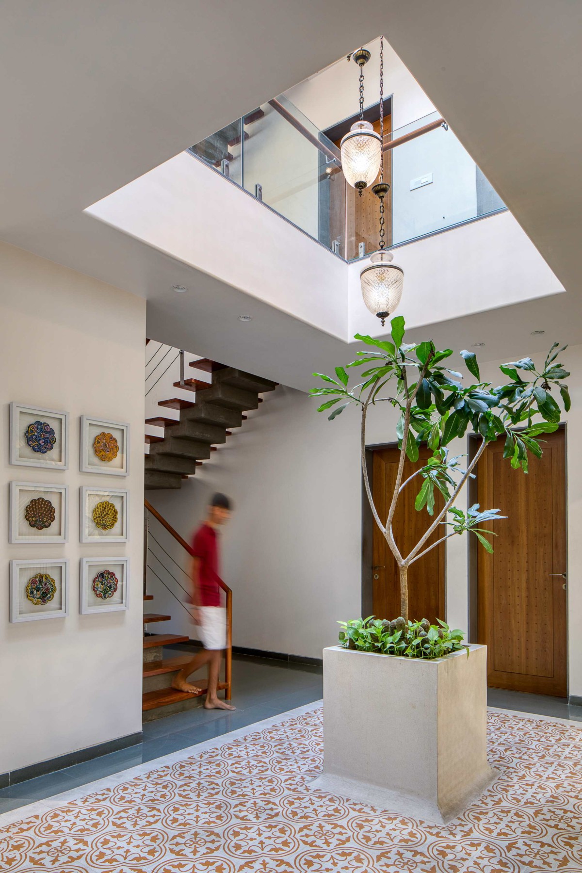 Courtyard and Dining of Brick Screen House by MS Design Studio