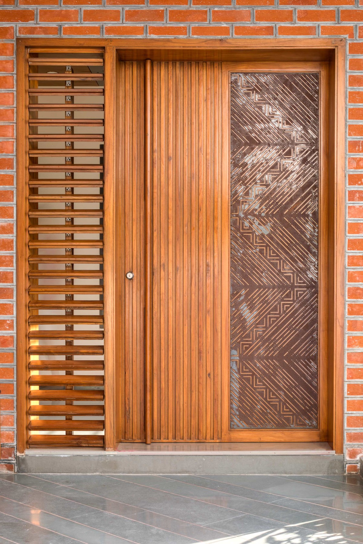 Detailed shot of door of Brick Screen House by MS Design Studio
