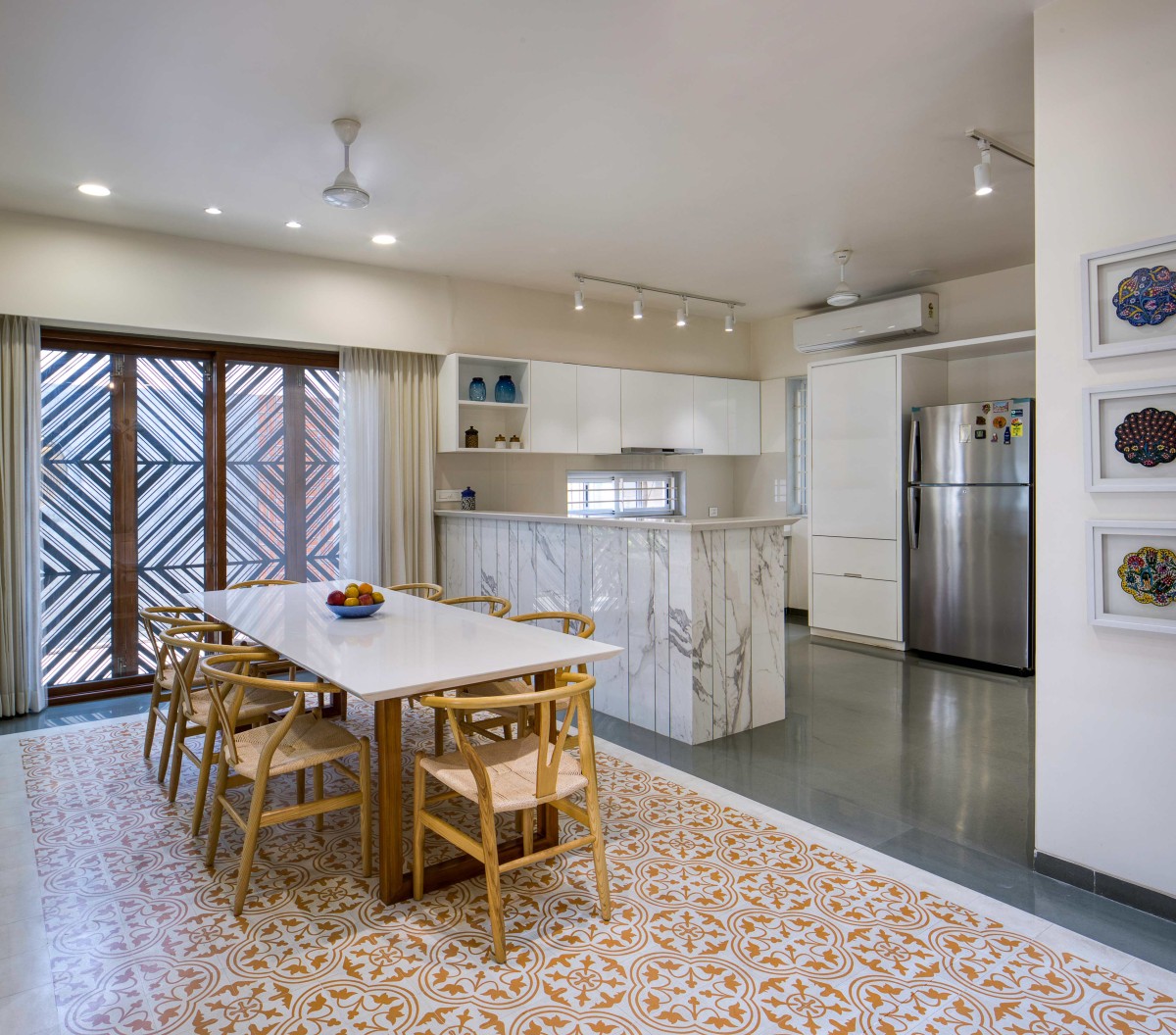 Dining and Kitchen of Brick Screen House by MS Design Studio