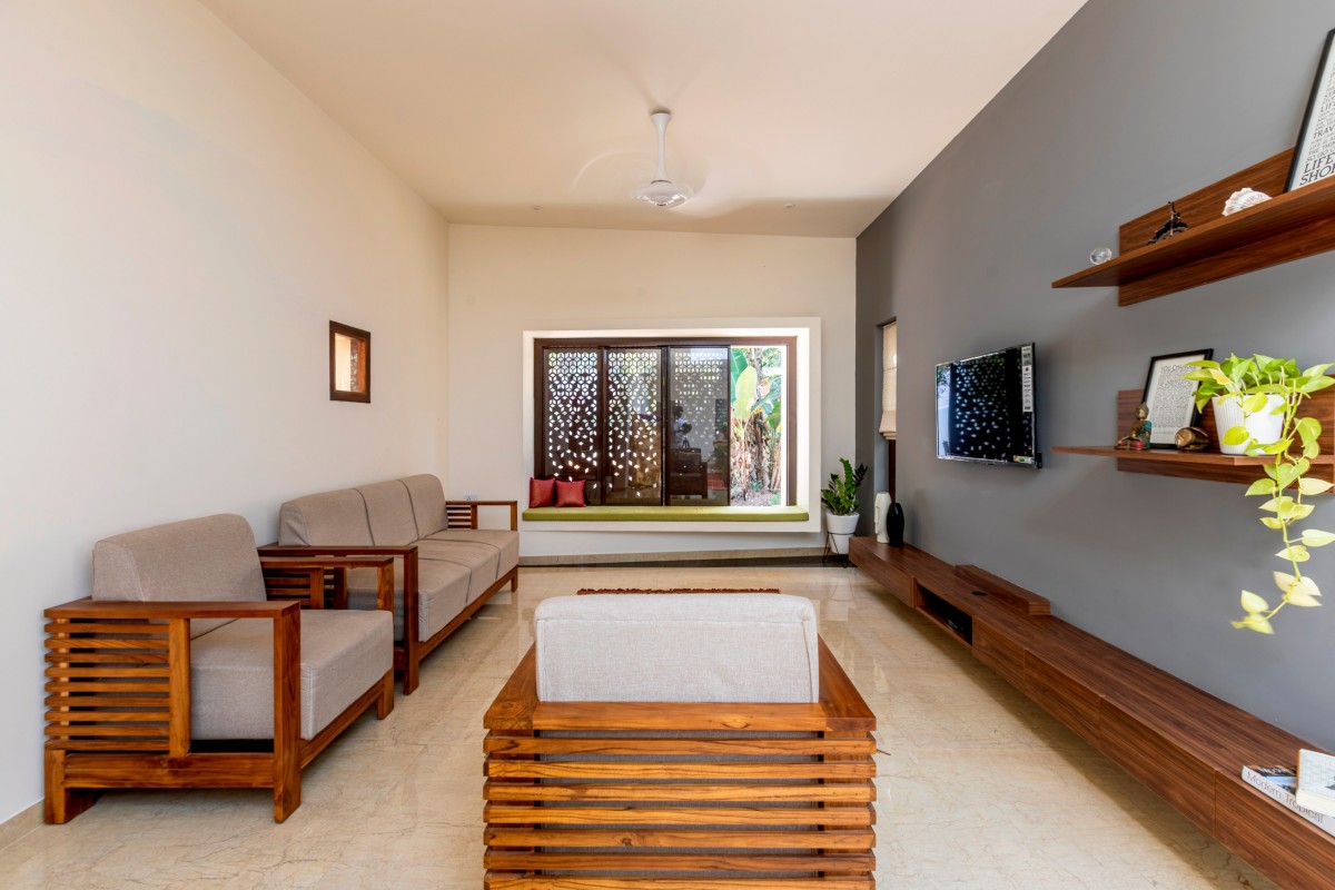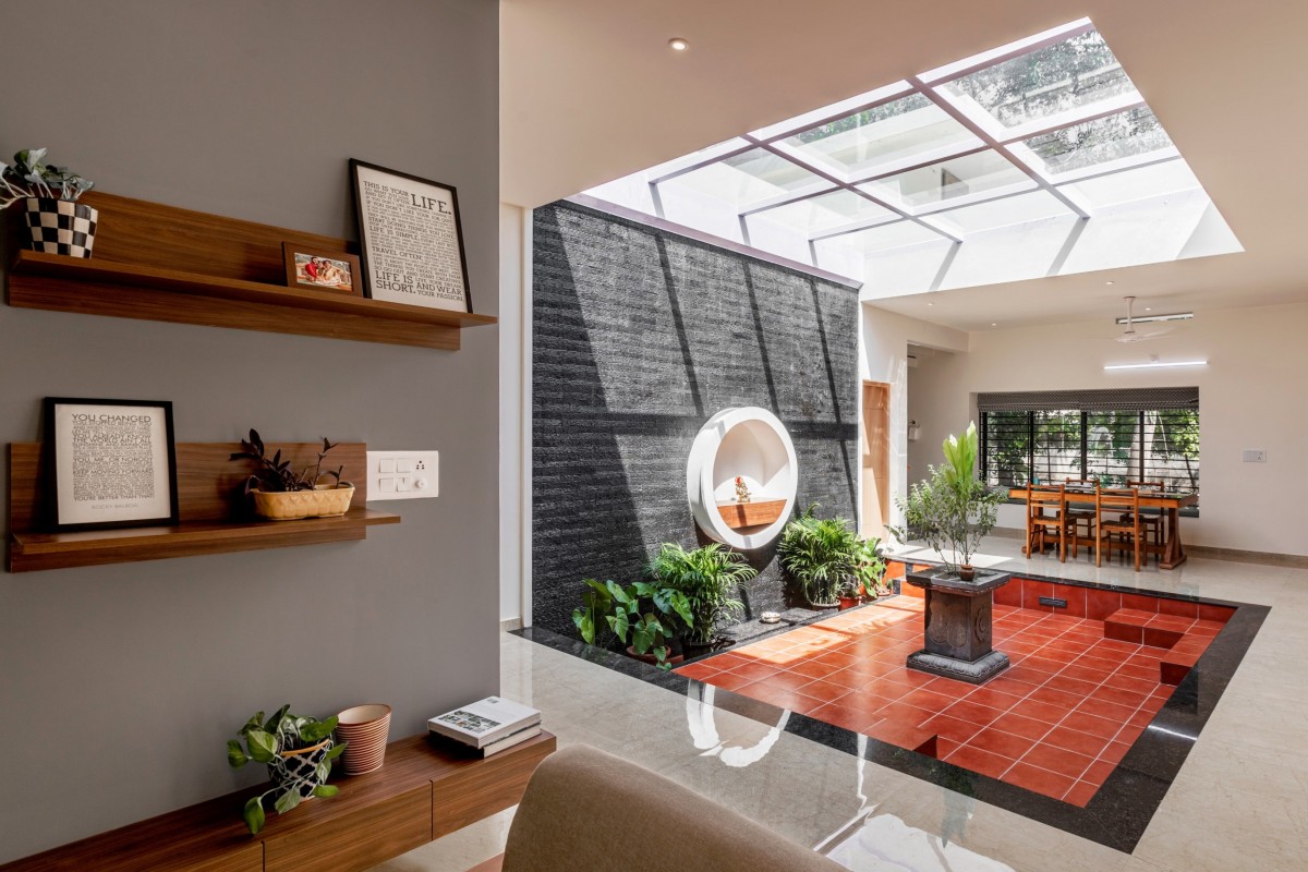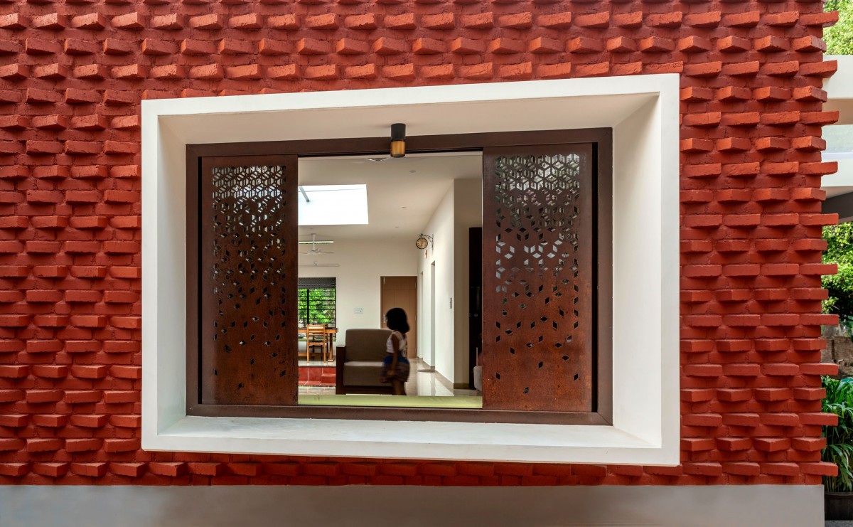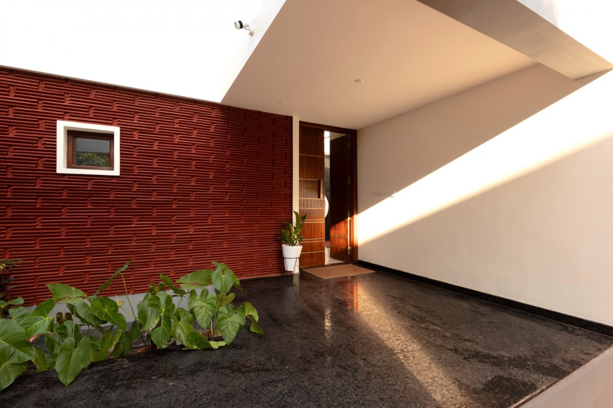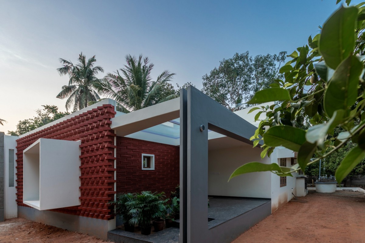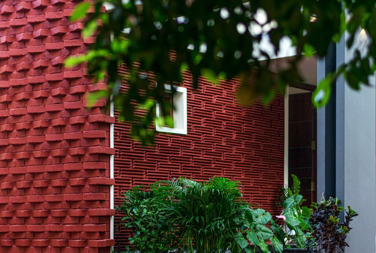 The Brick veil, a 2125 sq.ft house, was built for two assistant professors looking for a residence that reflects the traditional Naalukettu style, a house with one central courtyard. Drawing from a site surrounded by trees, the brick veil ingests the greens in various degrees into the house. This single storey residence delivers requisite needs to the users without compromising the luxury of living in a lush green space.