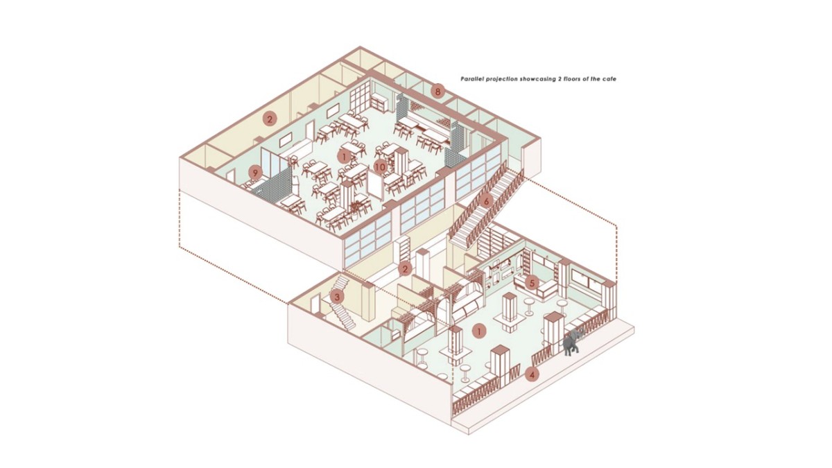 Axonometric view of Cafe Kaadhale by Spacetime Creative