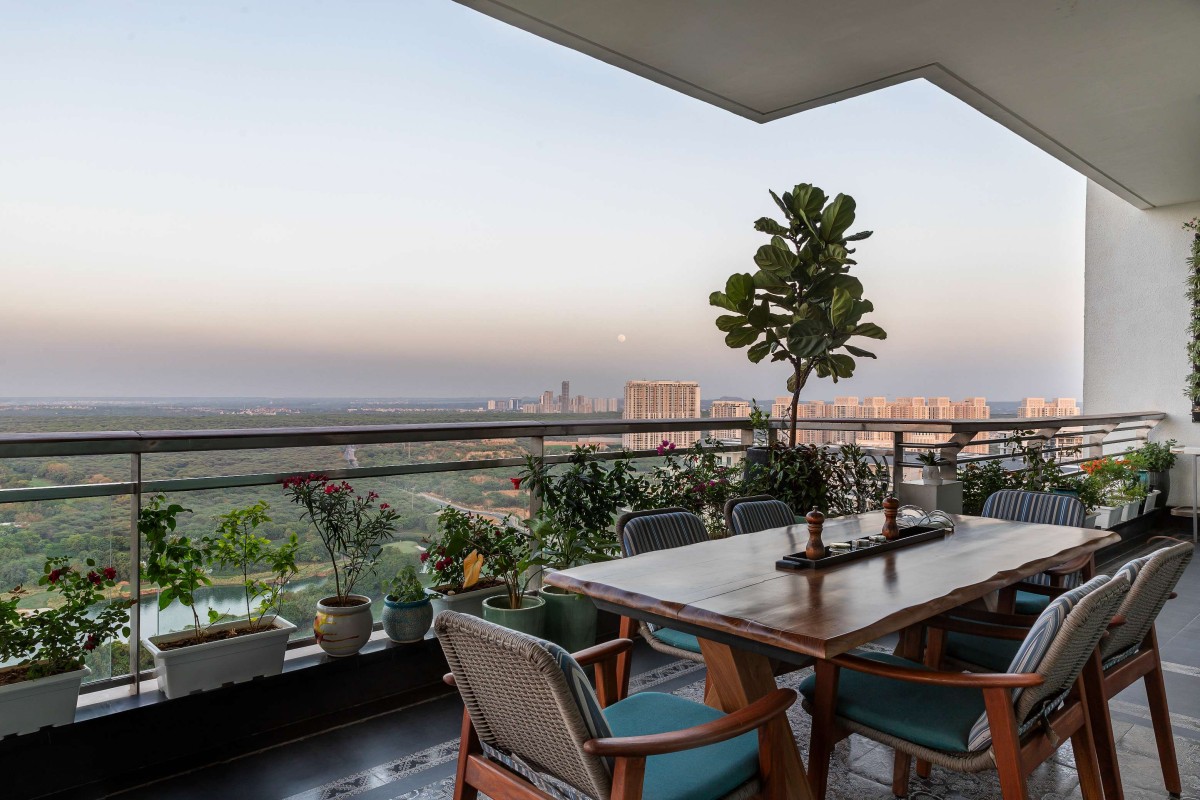 In a vast 9500 square feet of empty space, a captivating vision emerged -  the breathtaking view of the adjacent golf course, framed by a generous balcony. “This view immediately became the heart of their home, a space that would be maximised and celebrated!”, added Sonali. With a mere requirement for three bedrooms, the emphasis was laid on elevating the living spaces, where the language of design would create an environment of comfort, functionality, and aesthetics.