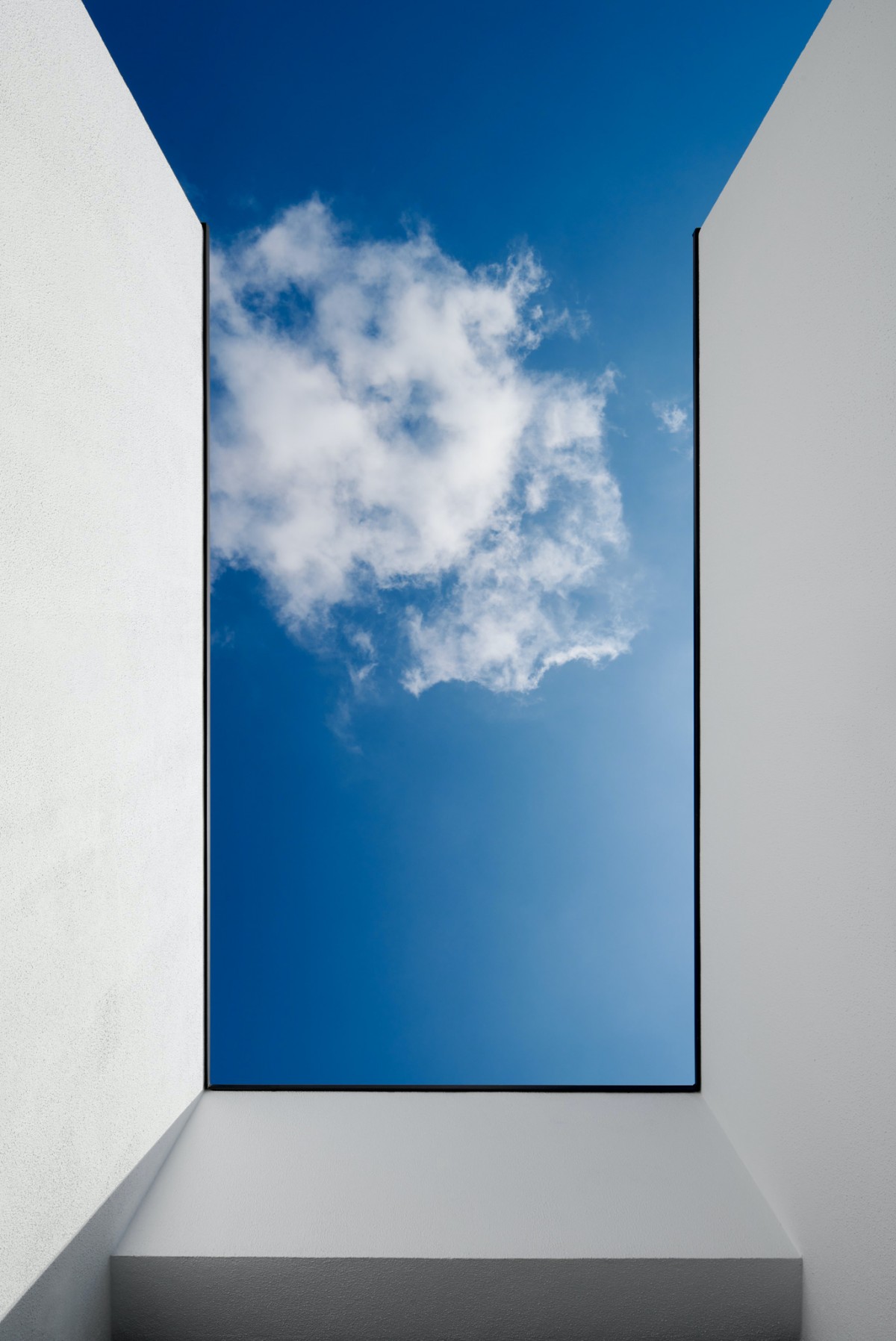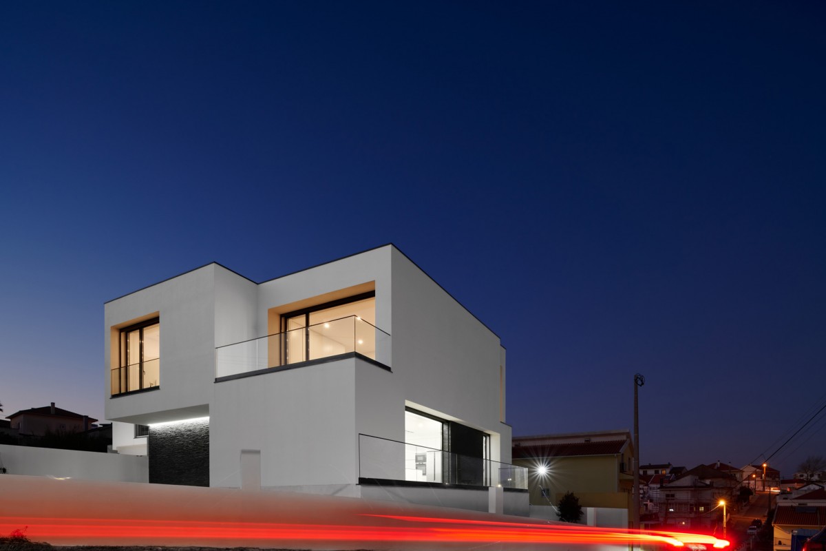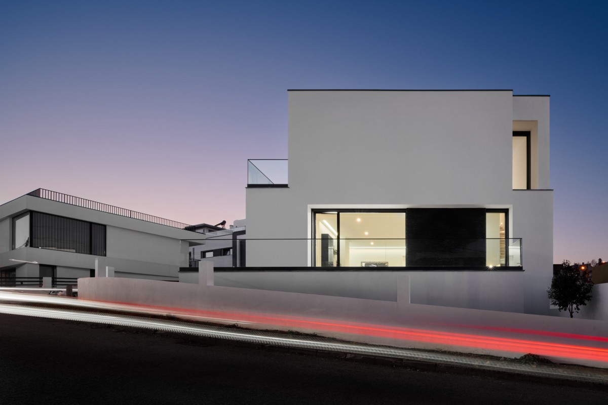 This contemporary 2-storey dwelling is defined by white chromatic planes, that intersect with glass planes, and a strongly defined black stone wall on the lower floor.